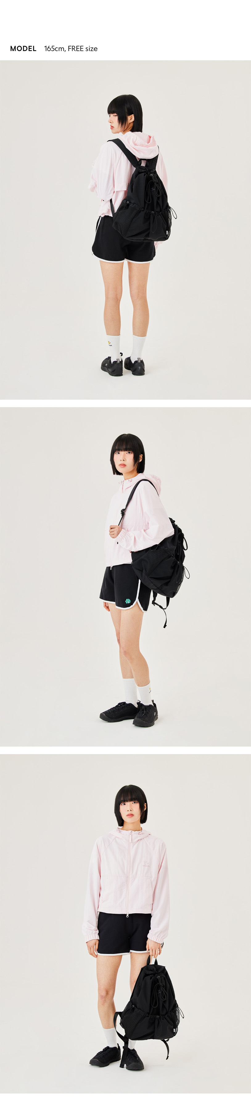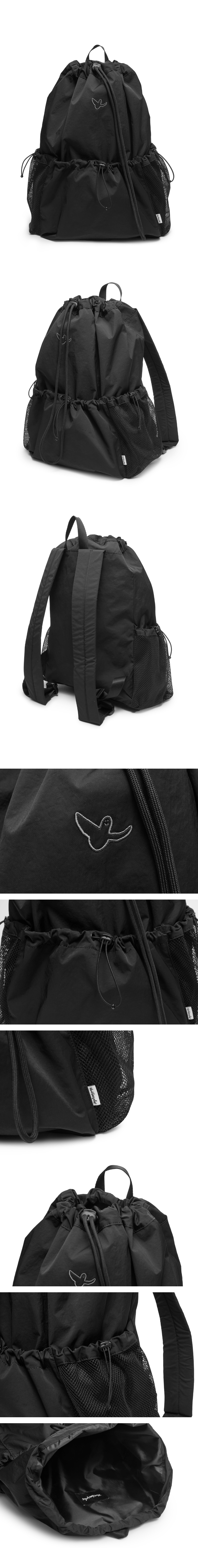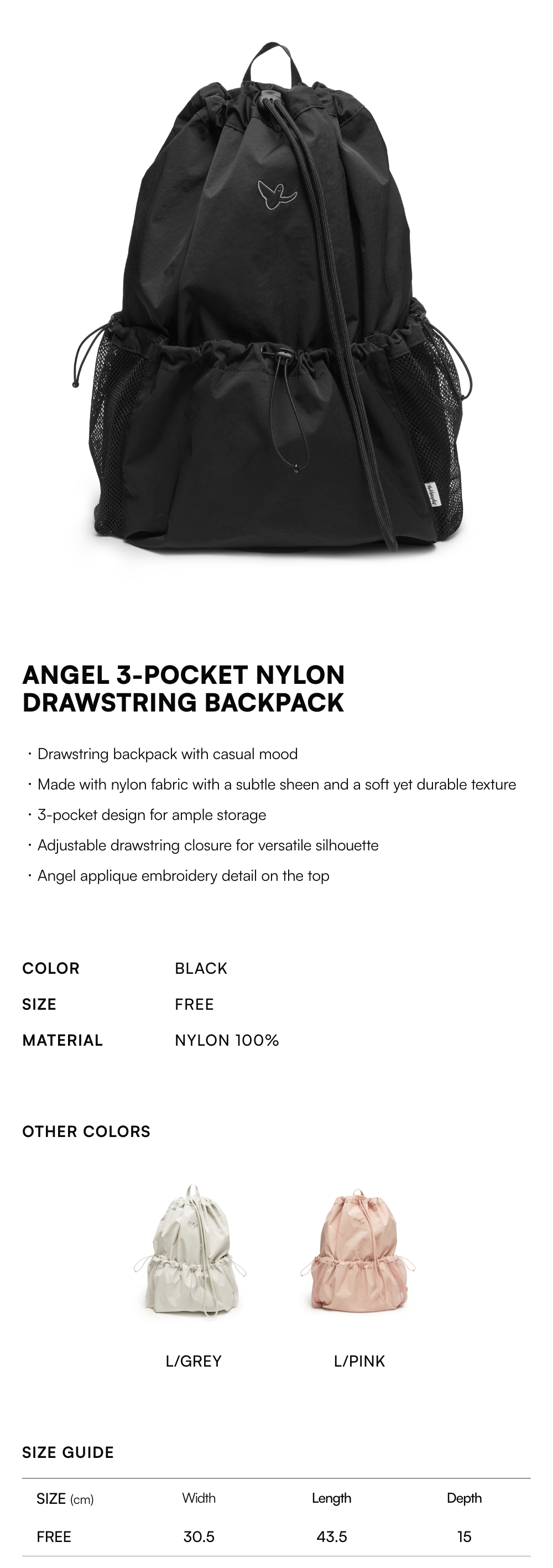 【10% OFF】Angel 3-Pocket Nylon Drawstring Backpack - BLACK
