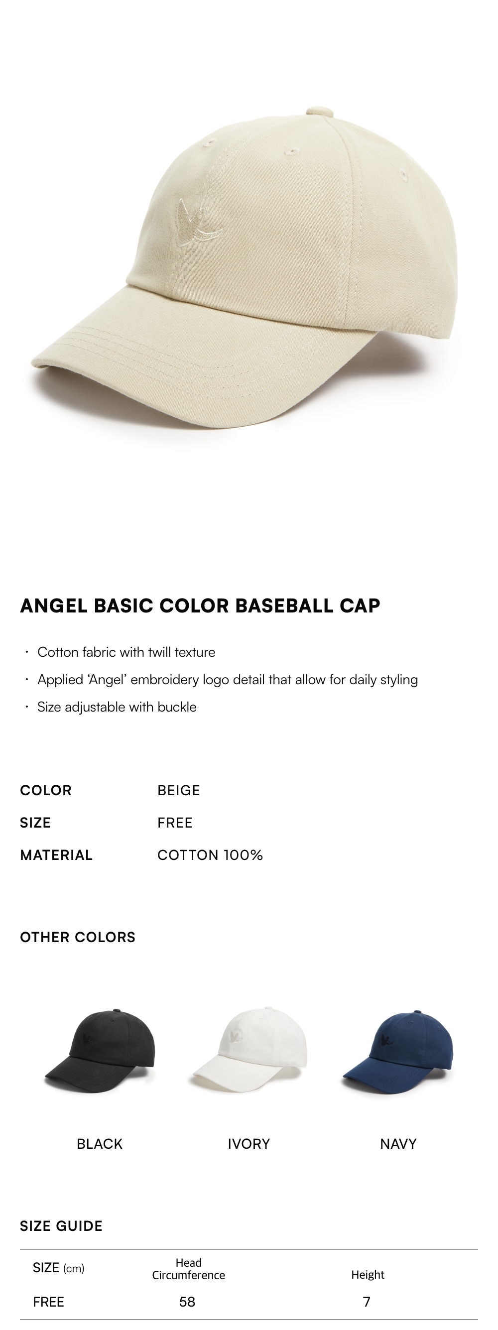 Angel Basic Color Baseball Cap - BEIGE