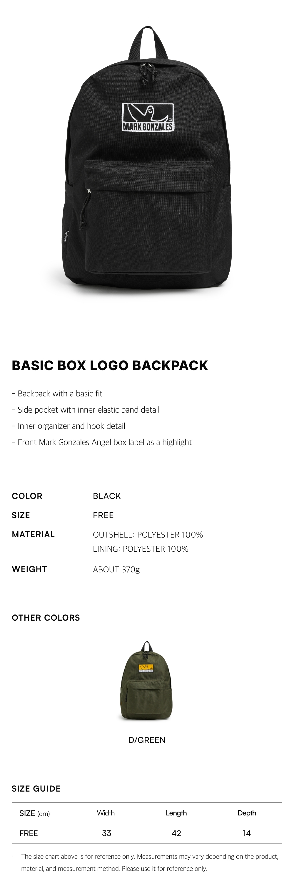 - Side pocket with inner elastic band detail