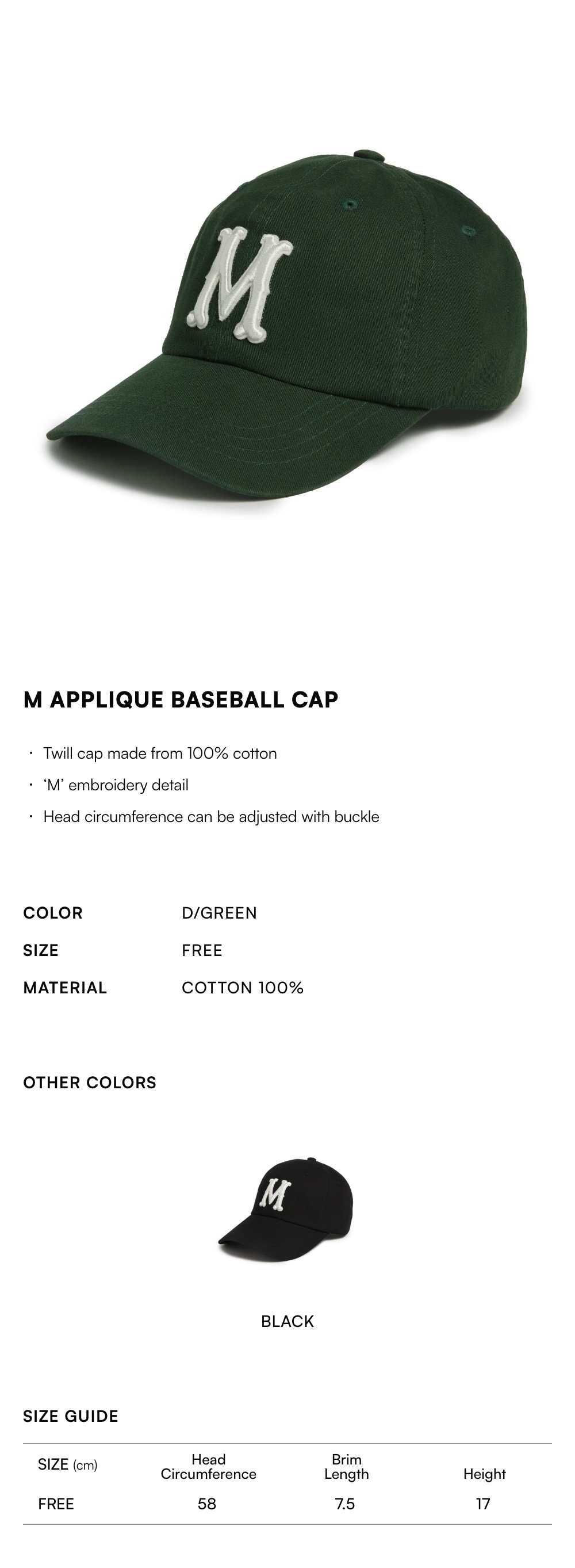 【10% OFF】M Applique Baseball Cap - D/GREEN