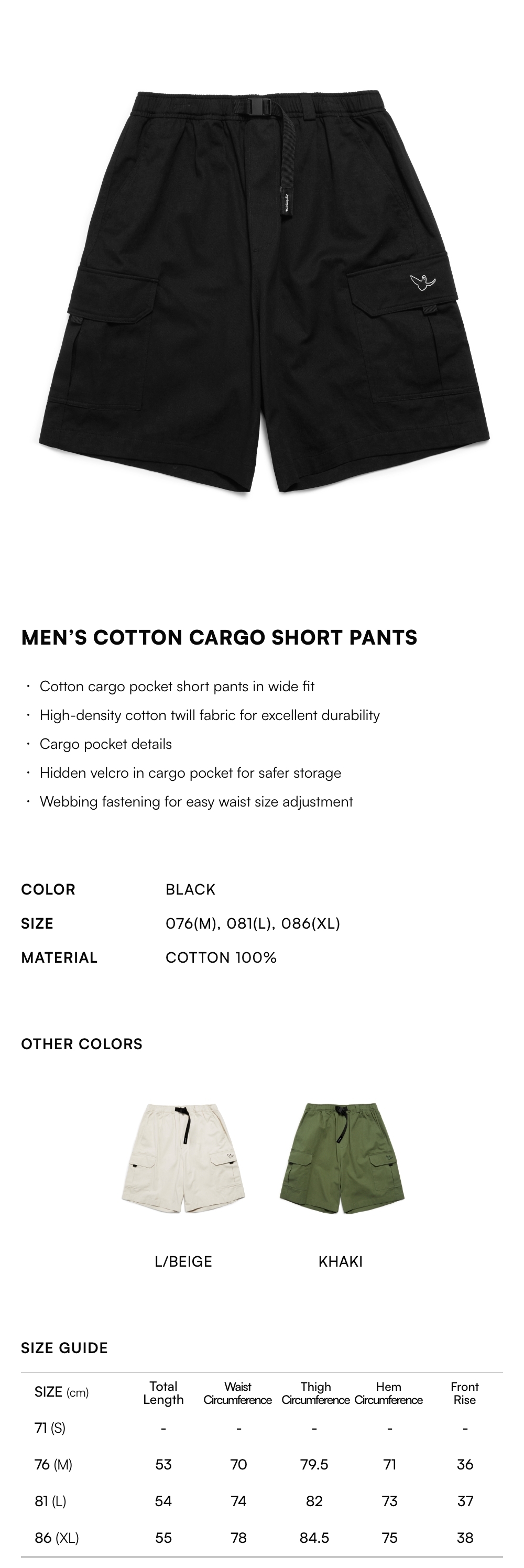 【20% OFF】Men's Cotton Cargo Short Pants - BLACK