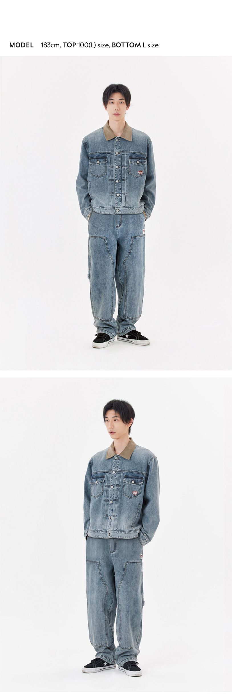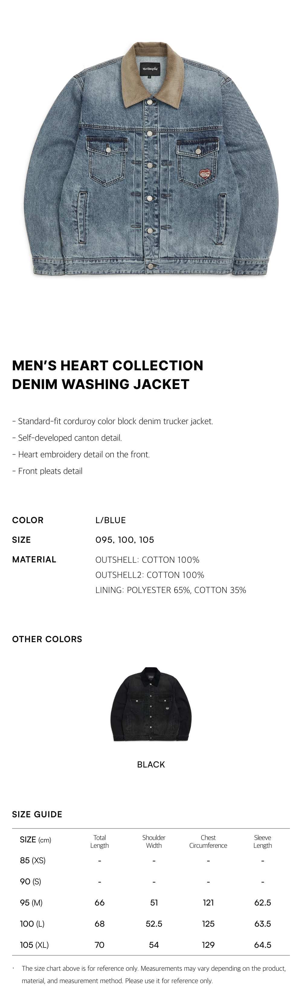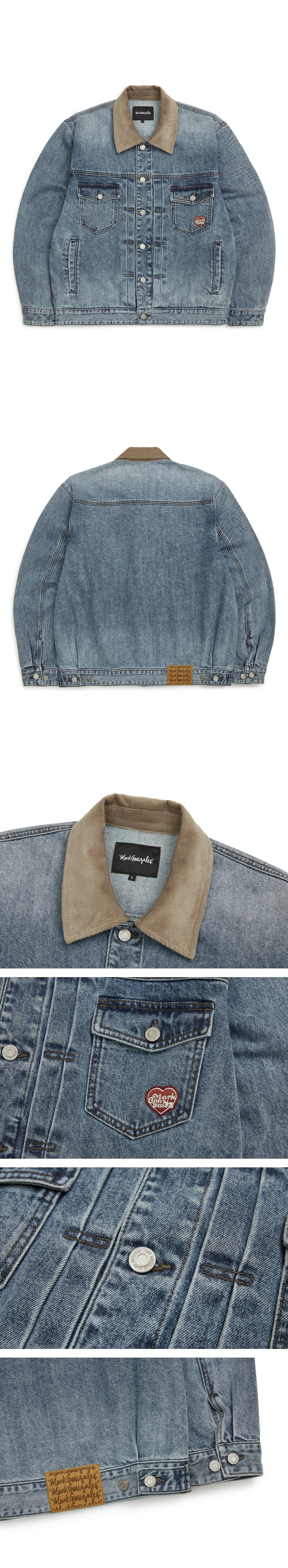 - Standard-fit corduroy color block denim trucker jacket.