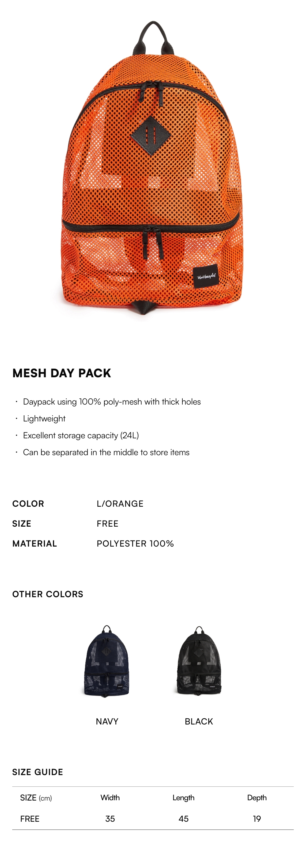 【20% OFF】Mesh Day Pack - L/ORANGE