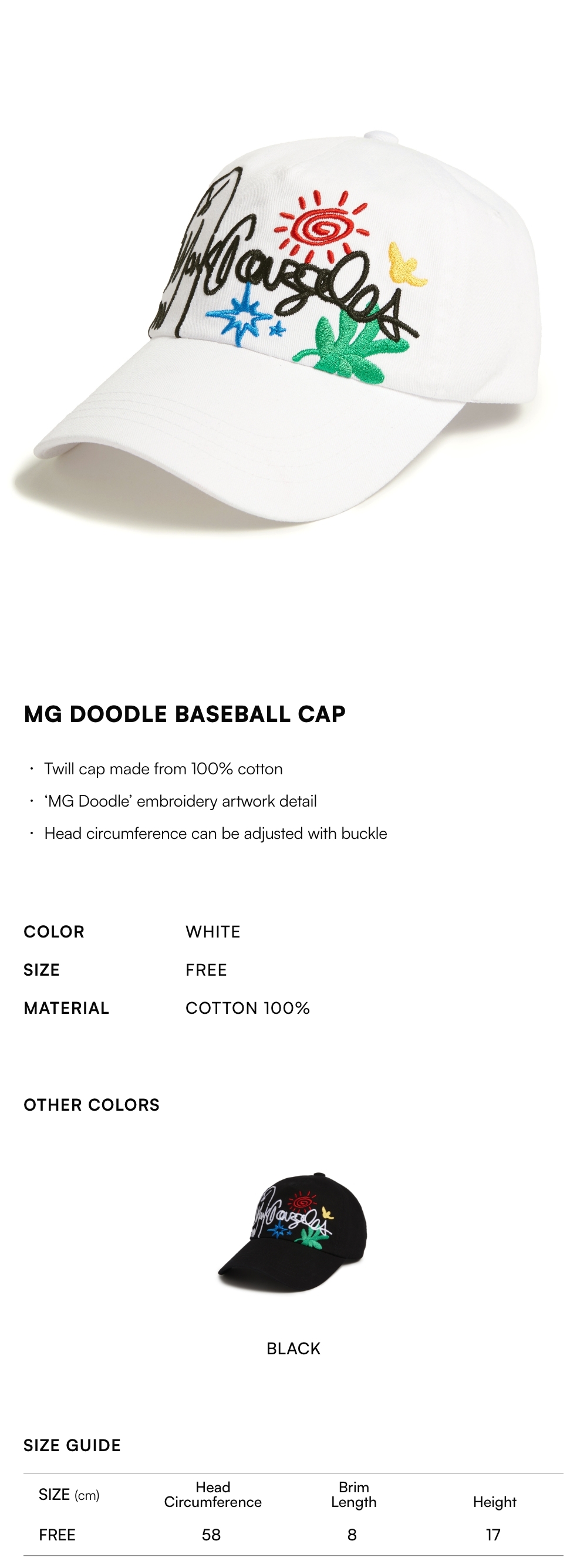 【10% OFF】MG Doodle Baseball Cap - WHITE