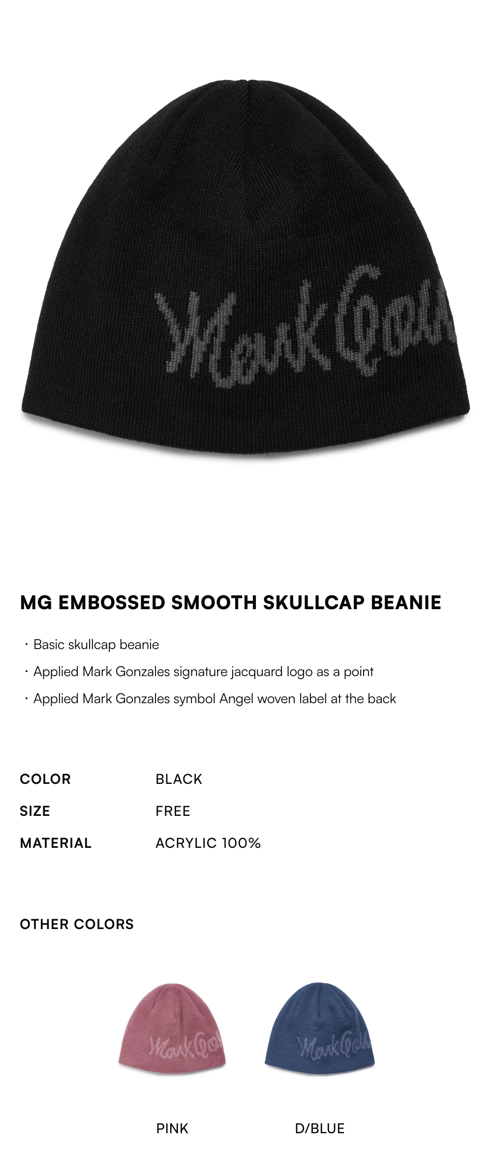 【15% OFF】MG Embossed Smooth Skullcap Beanie - BLACK