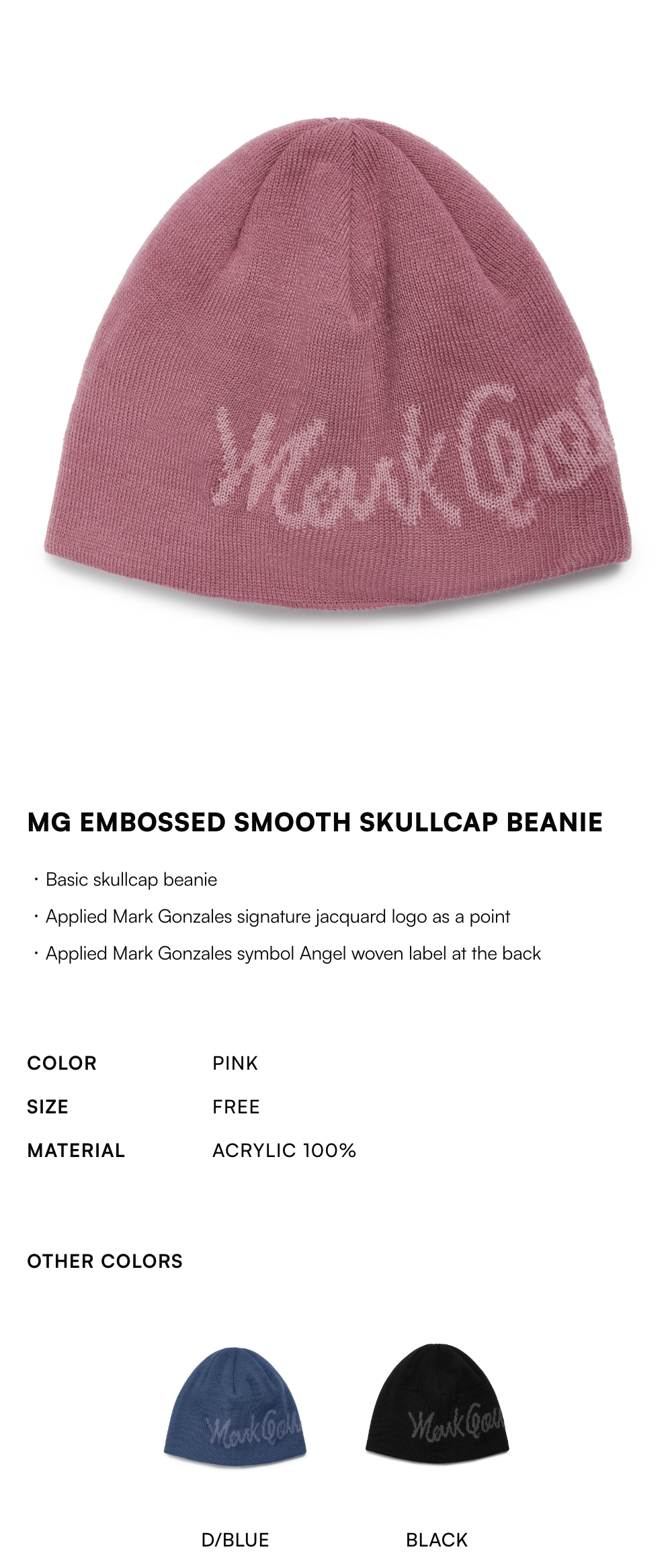 【20% OFF】MG Embossed Smooth Skullcap Beanie - PINK