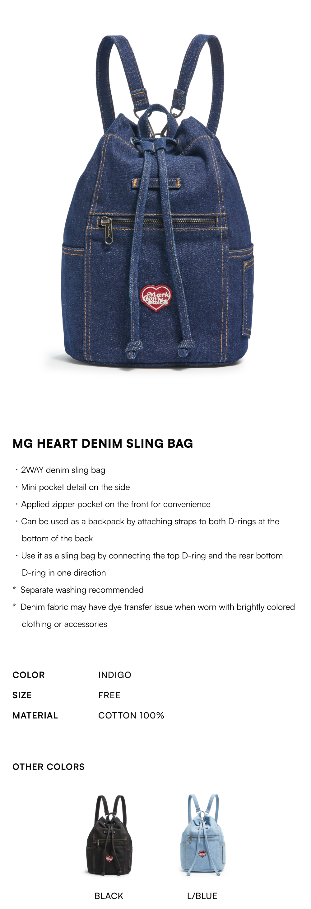 【20% OFF】MG Heart Denim Sling Bag - INDIGO