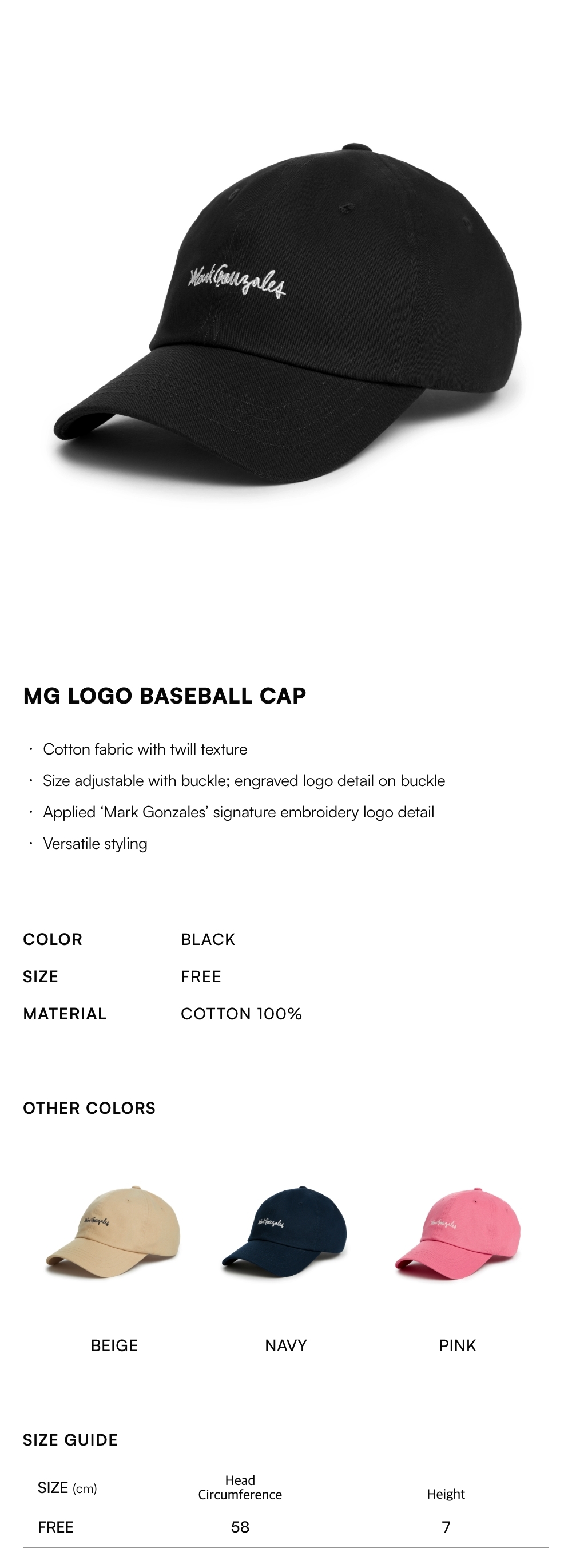 MG LOGO Baseball Cap - BLACK