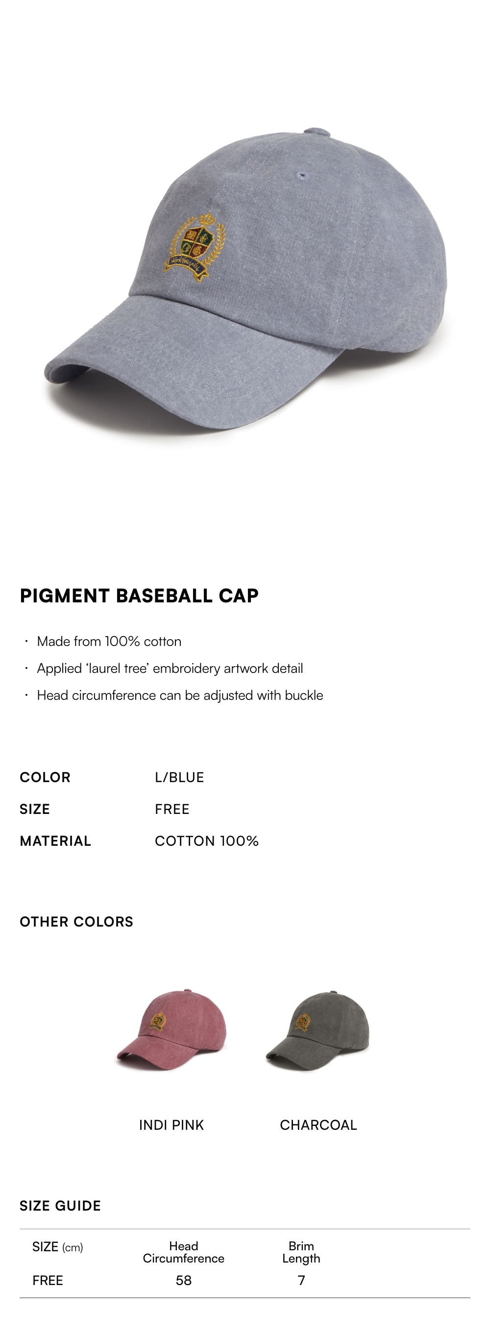 【20% OFF】Pigment Baseball Cap - L/BLUE