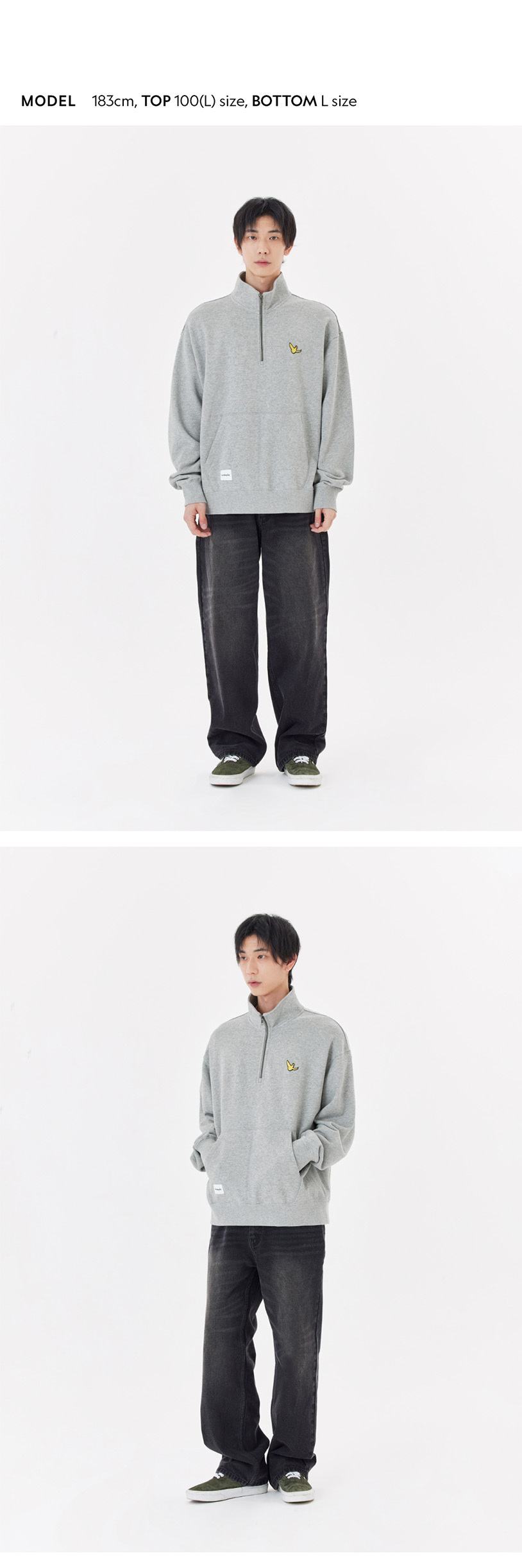 - Neck, sleeves, and hem feature high-density 2x1 rib.