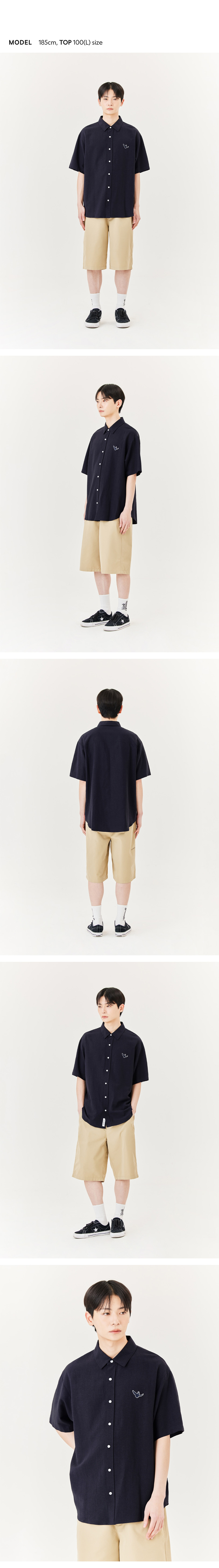 - UNISEX short sleeve shirt using mixed linen fabric in loose-fit silhouette