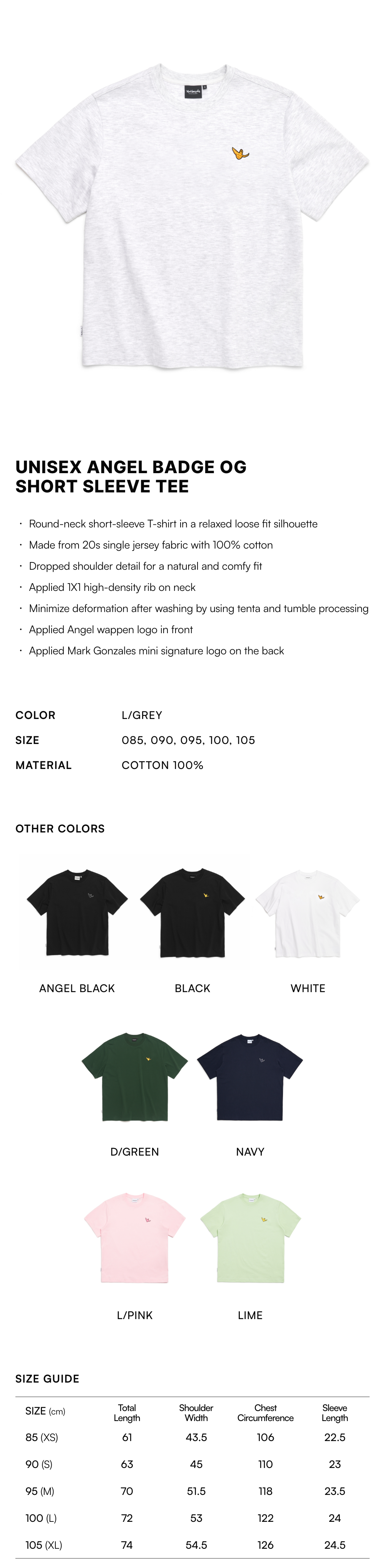 【20% OFF】Unisex Angel Badge OG Short Sleeve Tee - L/GREY