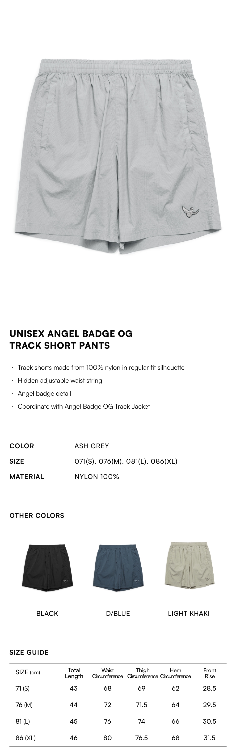 【20% OFF】Unisex Angel Badge OG Track Short Pants - ASH GREY