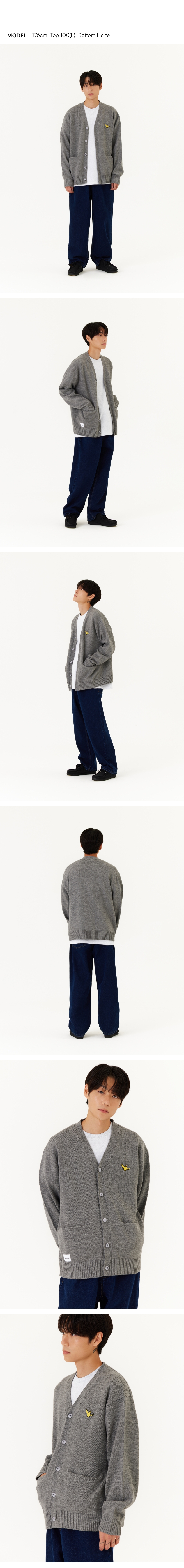 【20% OFF】Unisex Angel Badge OG V-Neck Knit Cardigan - M/GREY