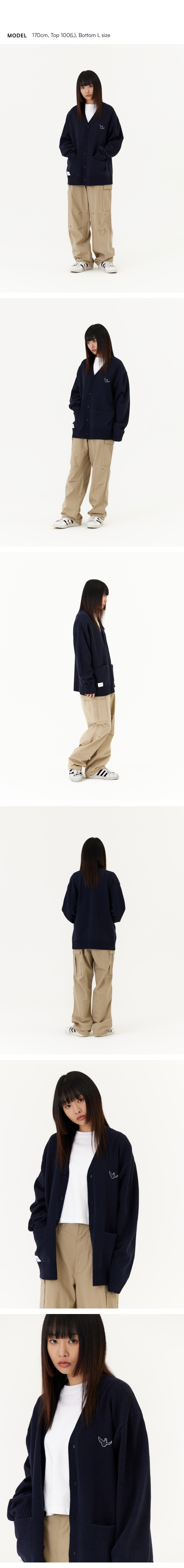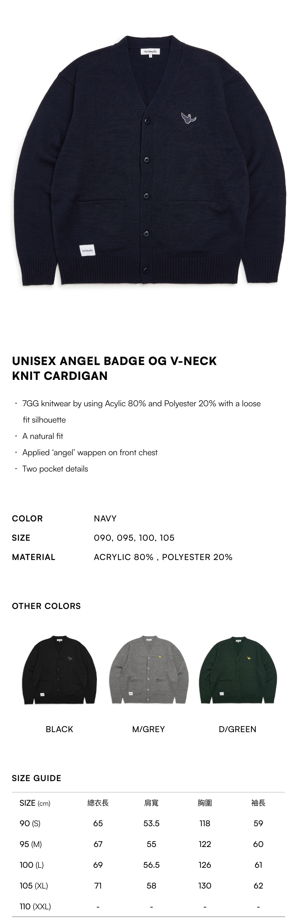 【20% OFF】Unisex Angel Badge OG V-Neck Knit Cardigan - NAVY