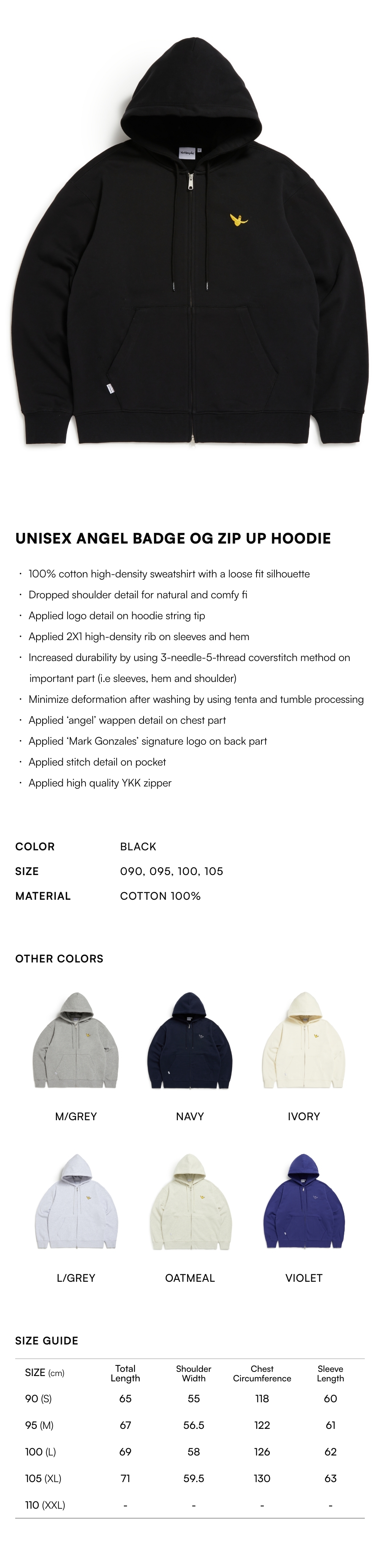 【20% OFF】Unisex Angel Badge OG Zip Up Hoodie - BLACK