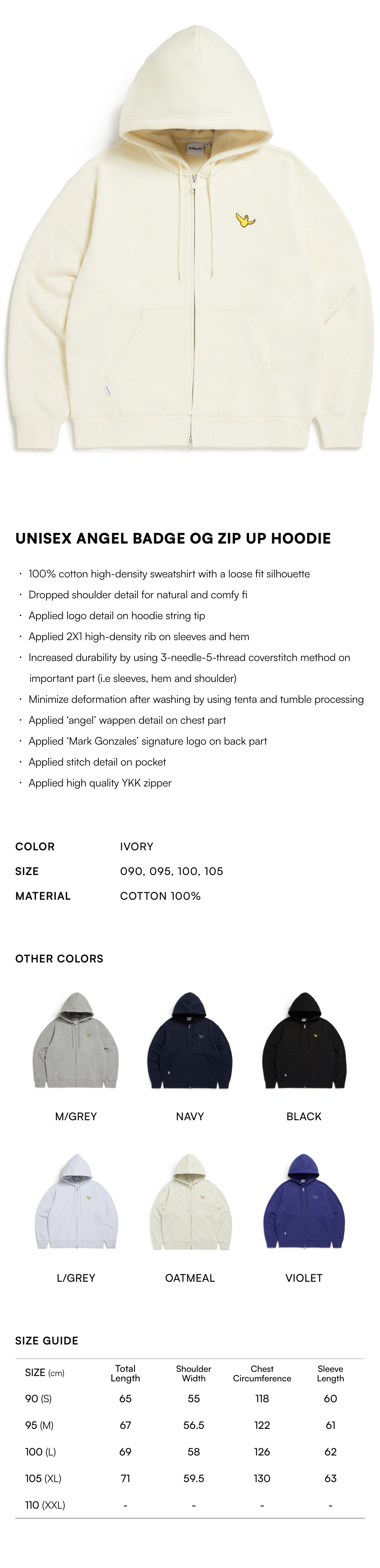 【20% OFF】Unisex Angel Badge OG Zip Up Hoodie - IVORY