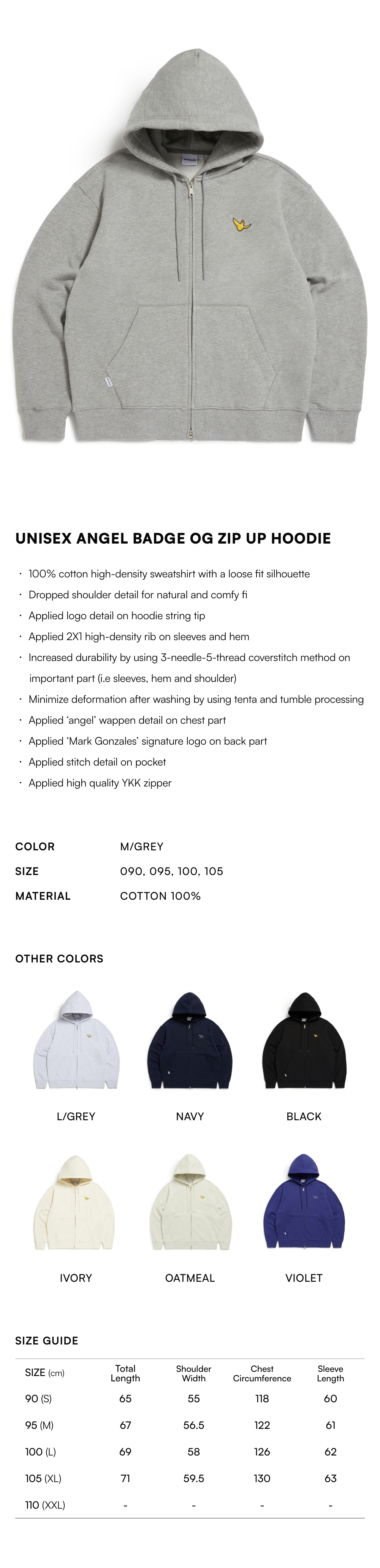 【20% OFF】Unisex Angel Badge OG Zip Up Hoodie - M/GREY