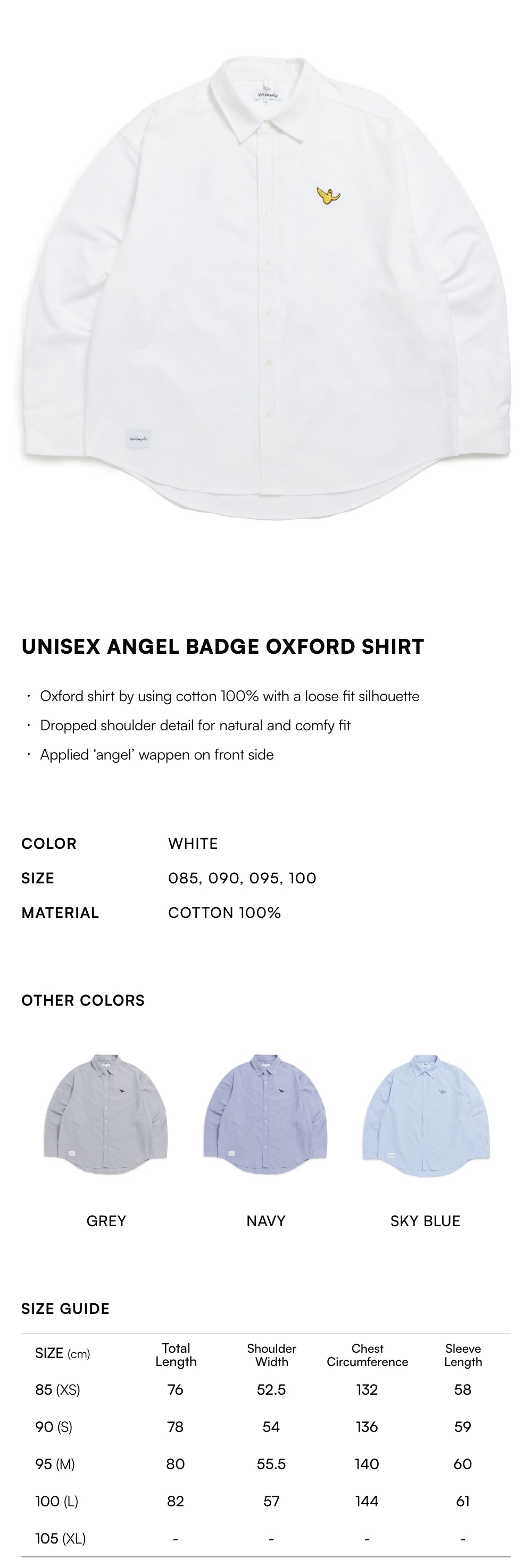 【20% OFF】Unisex Angel Badge Oxford Shirt - WHITE