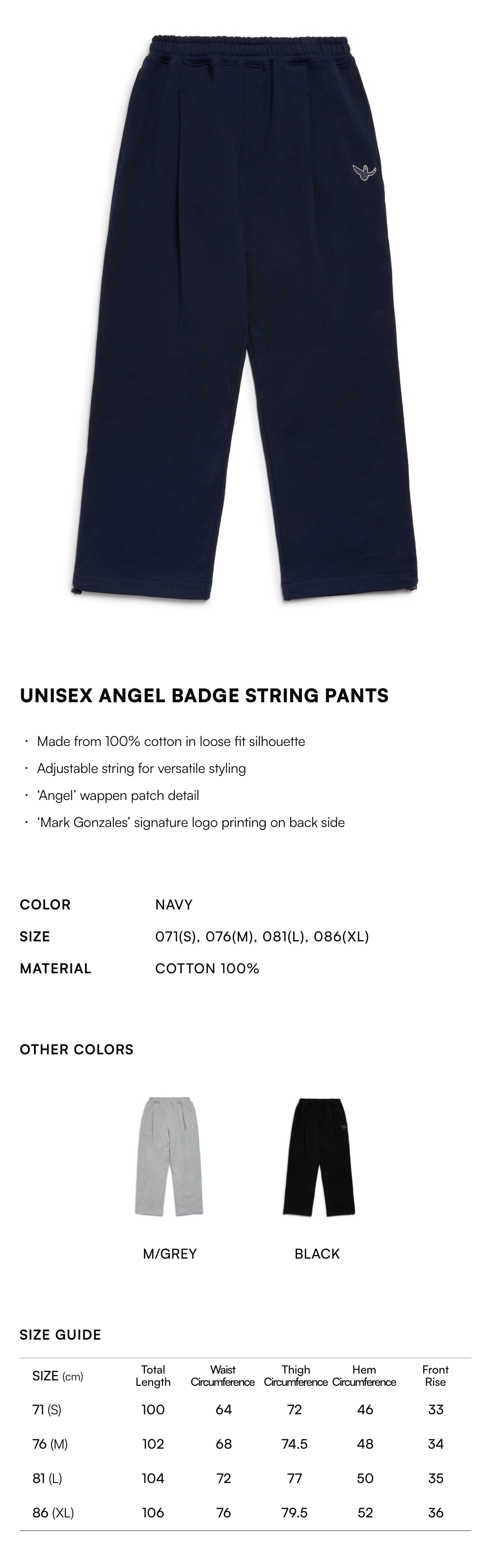 【20% OFF】Unisex Angel Badge String Pants - NAVY