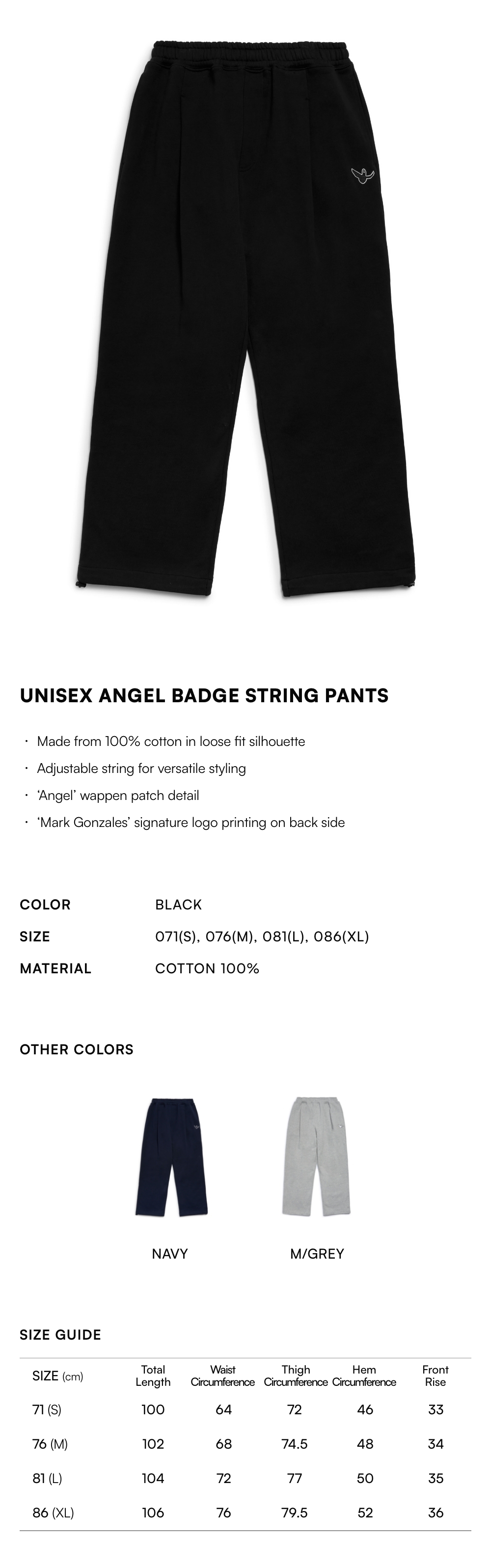 - Sweatpants version without elastic band at the hem