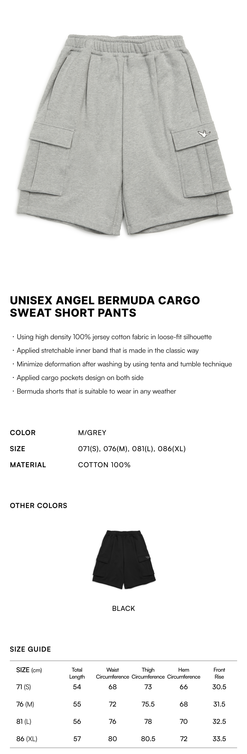 【15% OFF】Unisex Angel Bermuda Cargo Sweat Short Pants - M/GREY