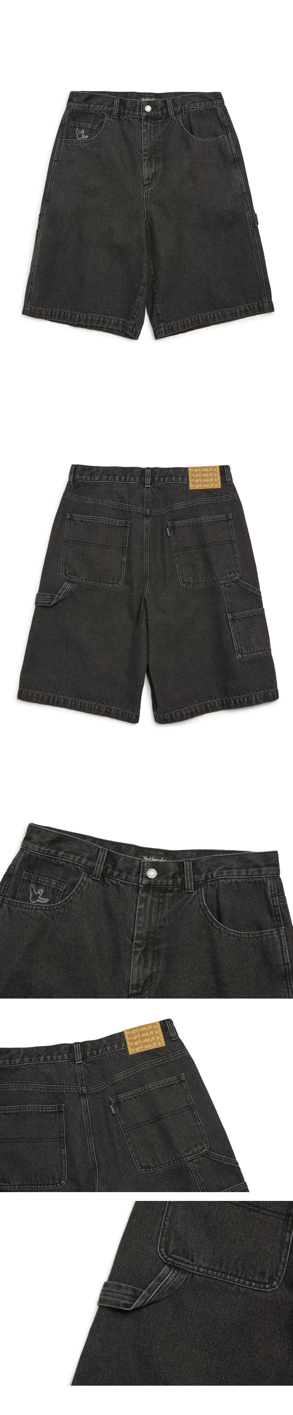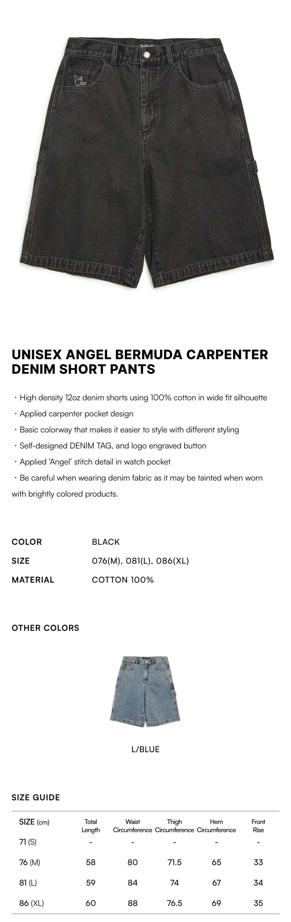 【15% OFF】Unisex Angel Bermuda Carpenter Denim Short Pants - BLACK