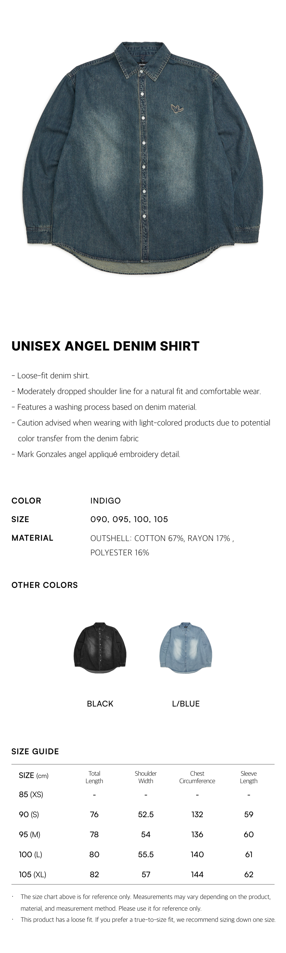 - Caution advised when wearing with light-colored products due to potential color transfer from the denim fabric