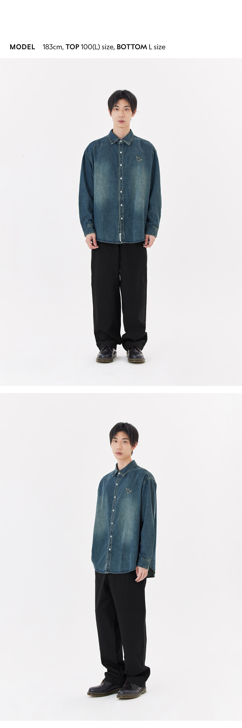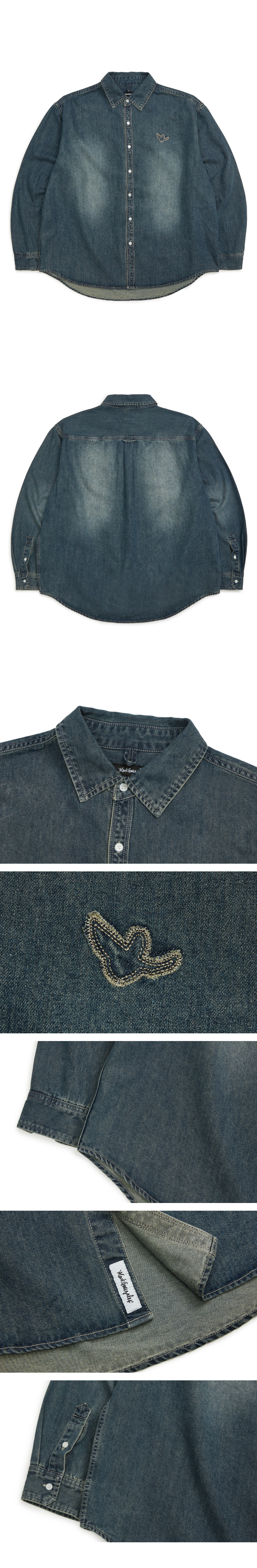 - Loose-fit denim shirt.