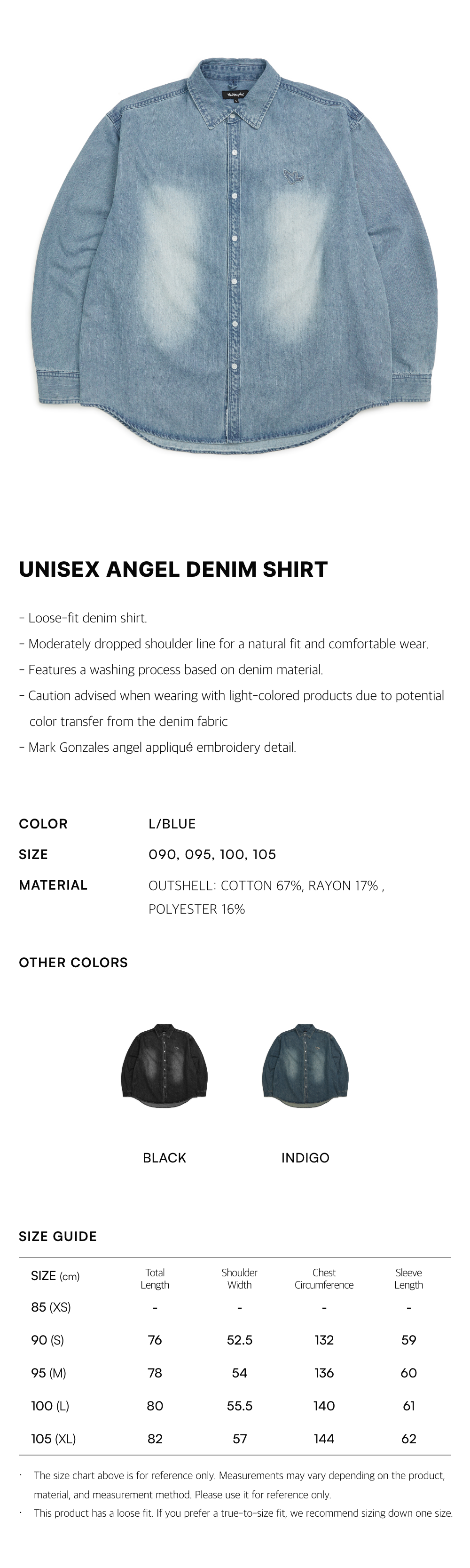 - Caution advised when wearing with light-colored products due to potential color transfer from the denim fabric