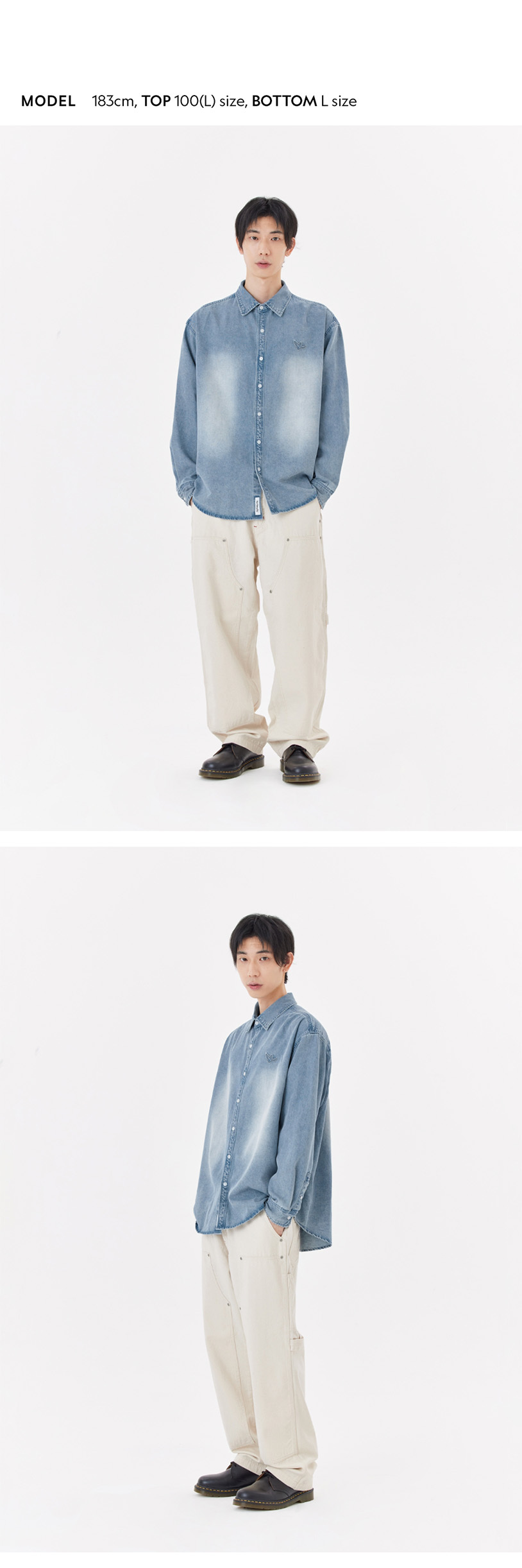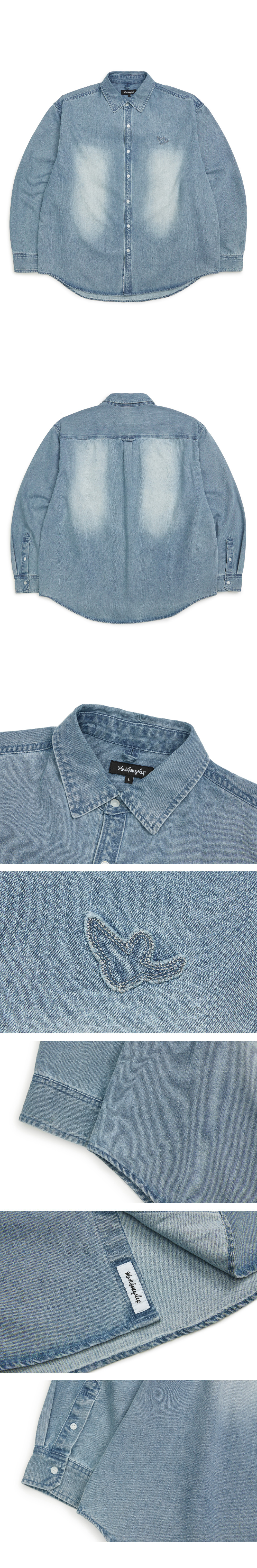 - Loose-fit denim shirt.
