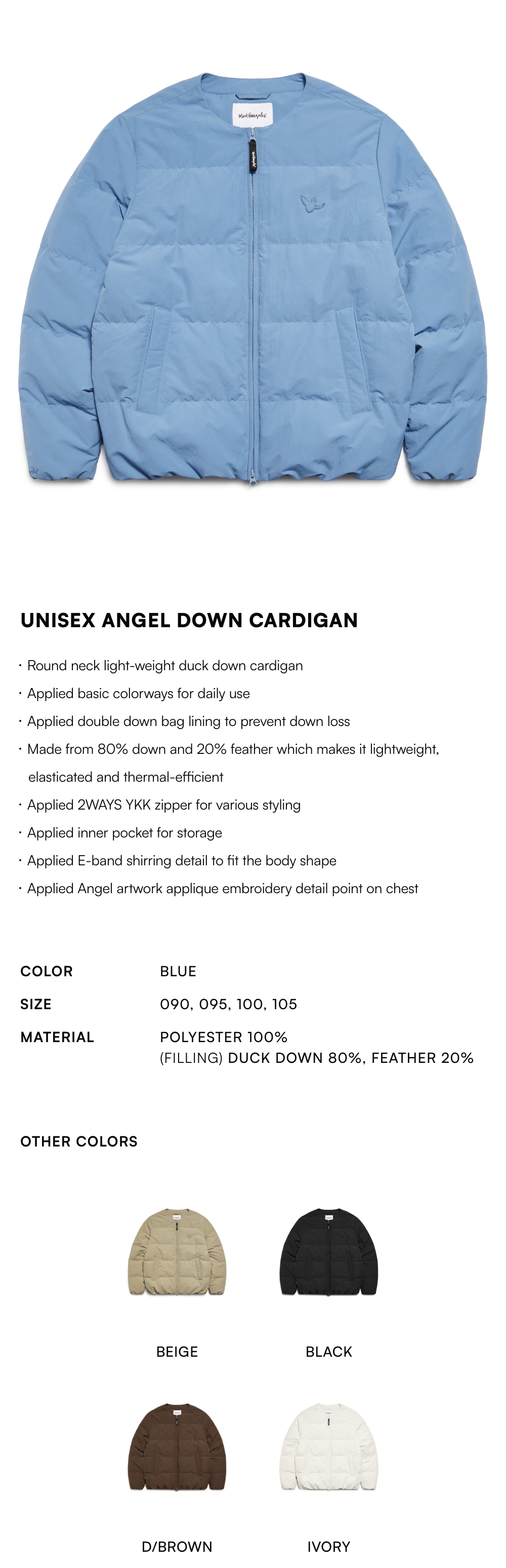 - Round neck light-weight duck down cardigan