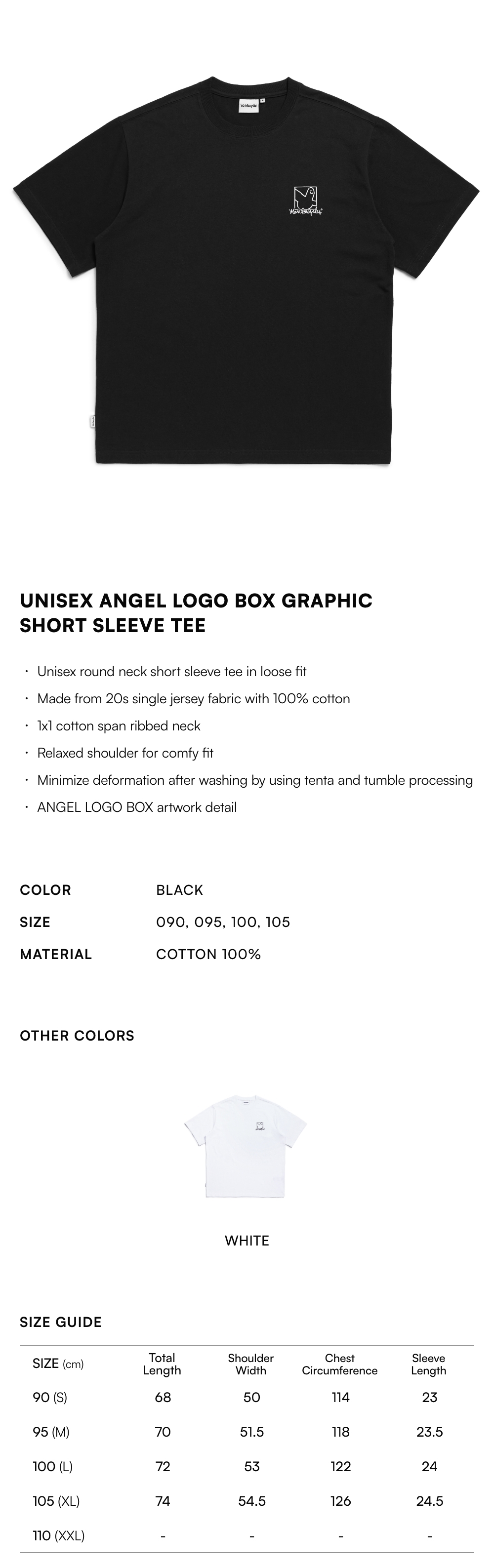 【15% OFF】Unisex Angel LOGO BOX Graphic Short Sleeve Tee - BLACK