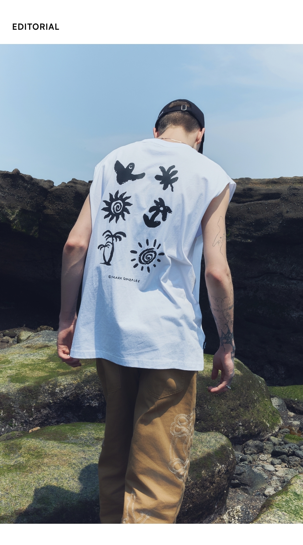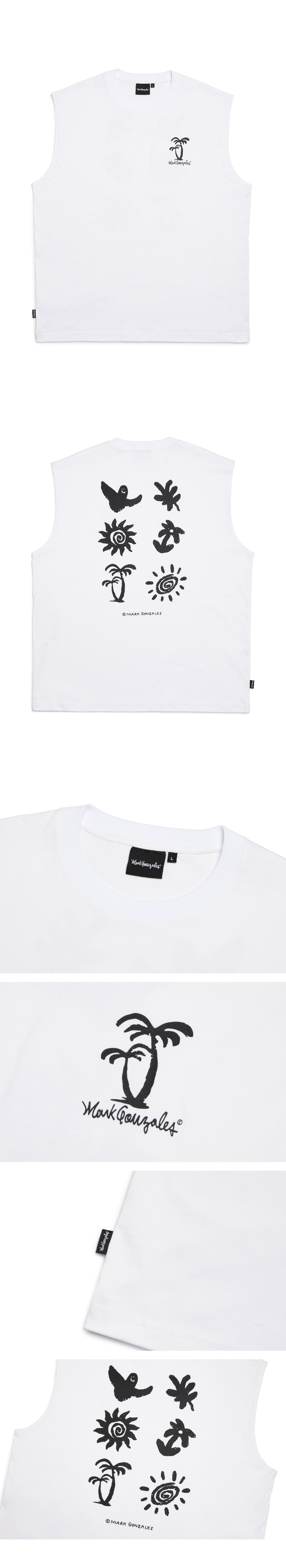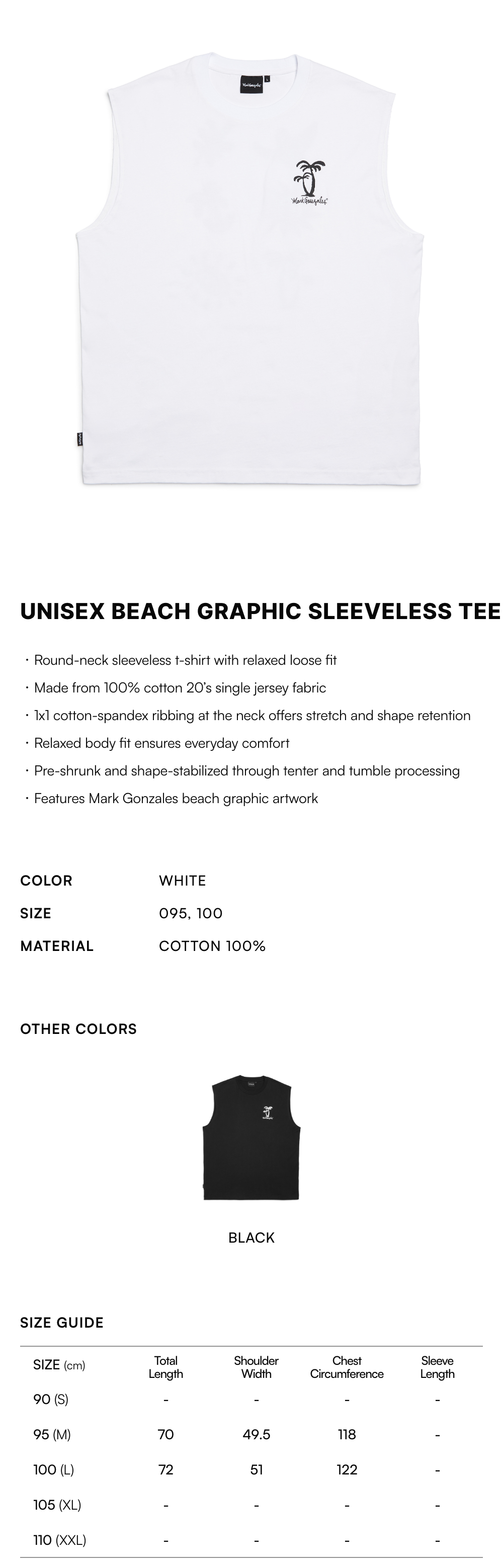 Unisex Beach Graphic Sleeveless Tee - WHITE