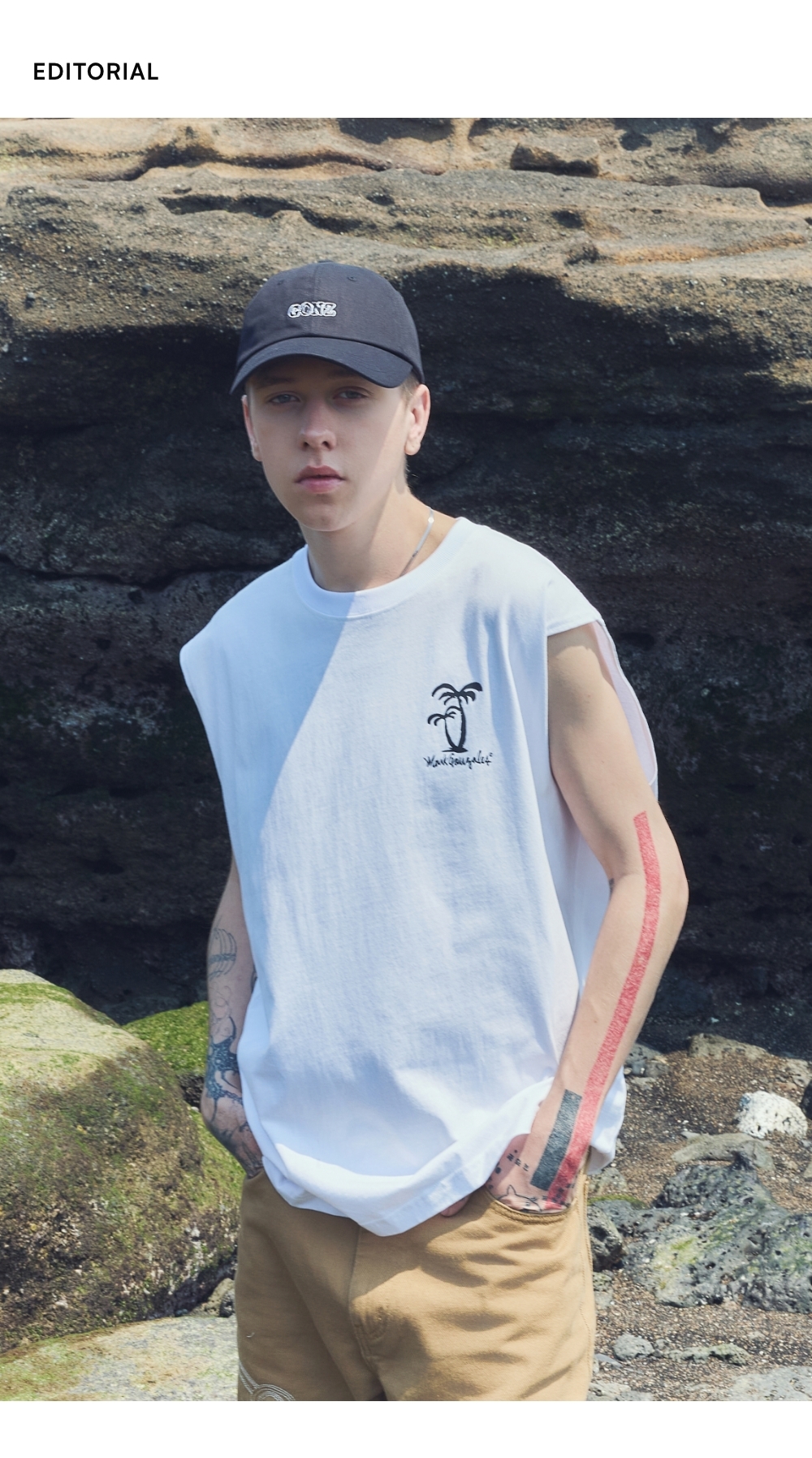 - Round-neck sleeveless t-shirt with relaxed loose fit