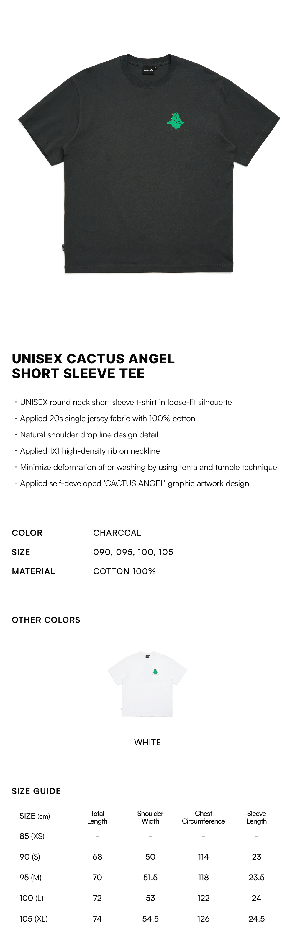 【10% OFF】Unisex Cactus Angel Short Sleeve Tee - CHARCOAL
