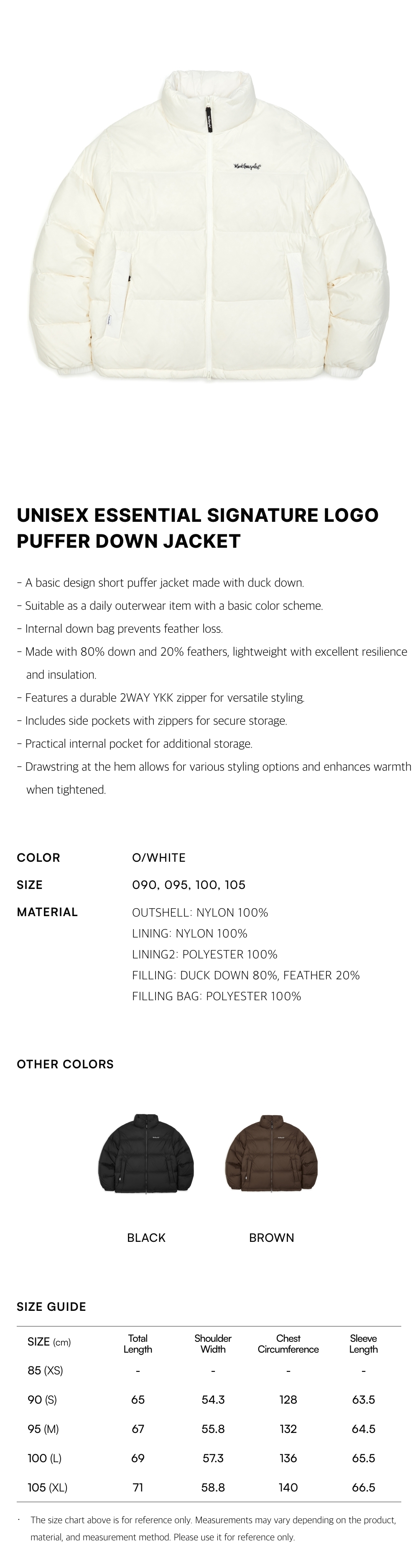 - A basic design short puffer jacket made with duck down.
