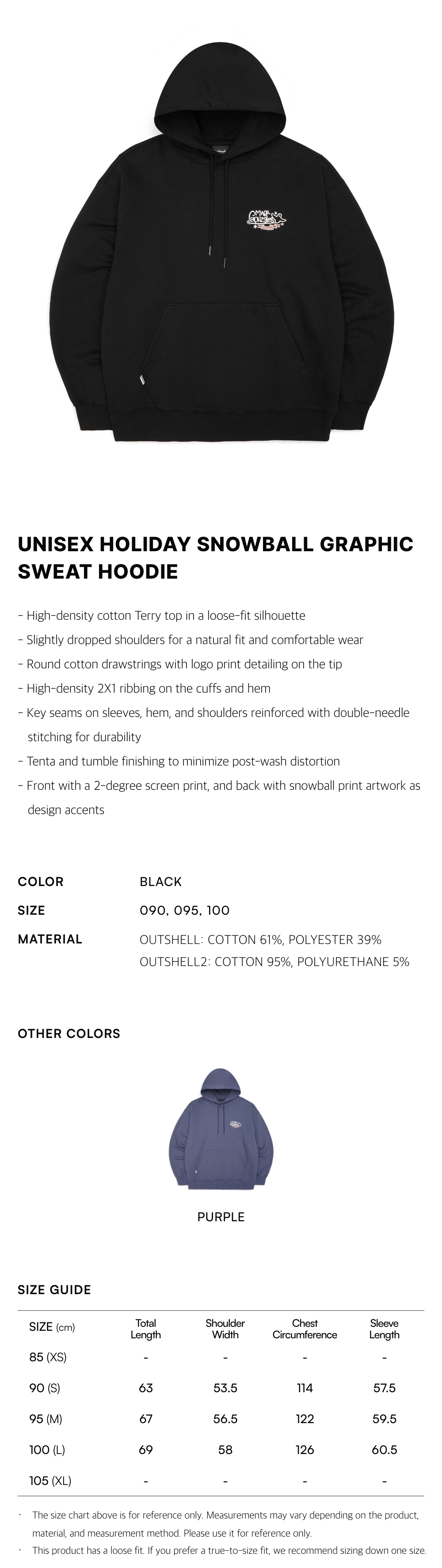 - Front with a 2-degree screen print, and back with snowball print artwork as design accents