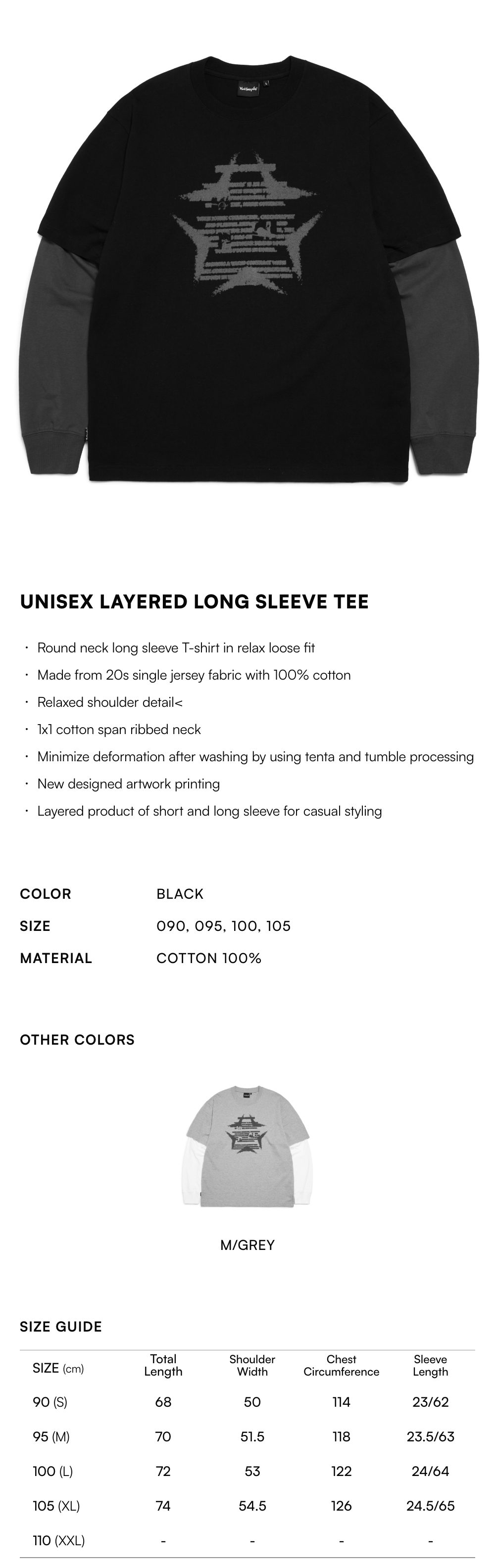 - Layered product of short and long sleeve for casual styling