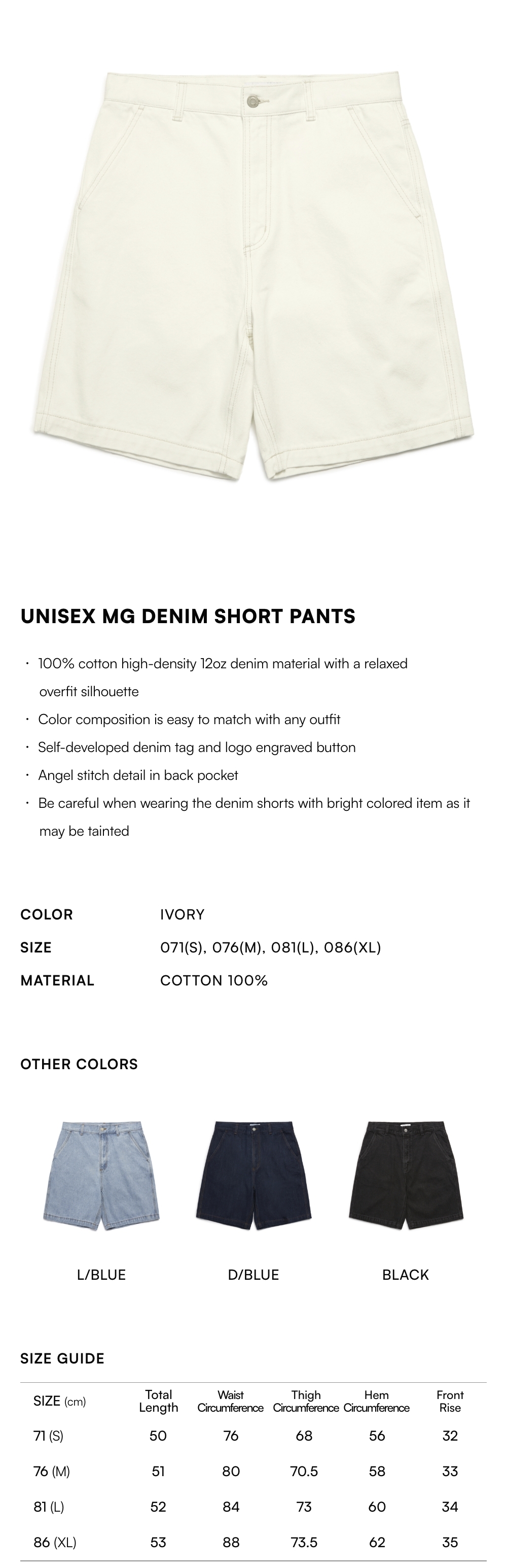 【20% OFF】Unisex MG Denim Short Pants - IVORY