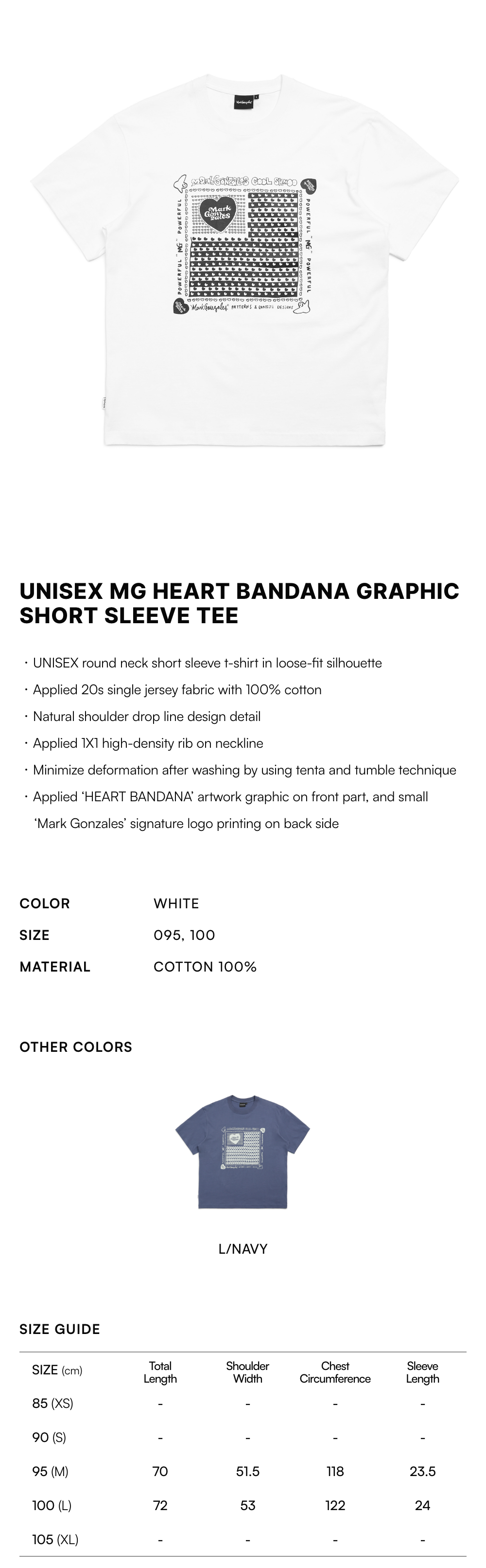 - Applied 'HEART BANDANA' artwork graphic on front part, and small 'Mark Gonzales' signature logo printing on back side