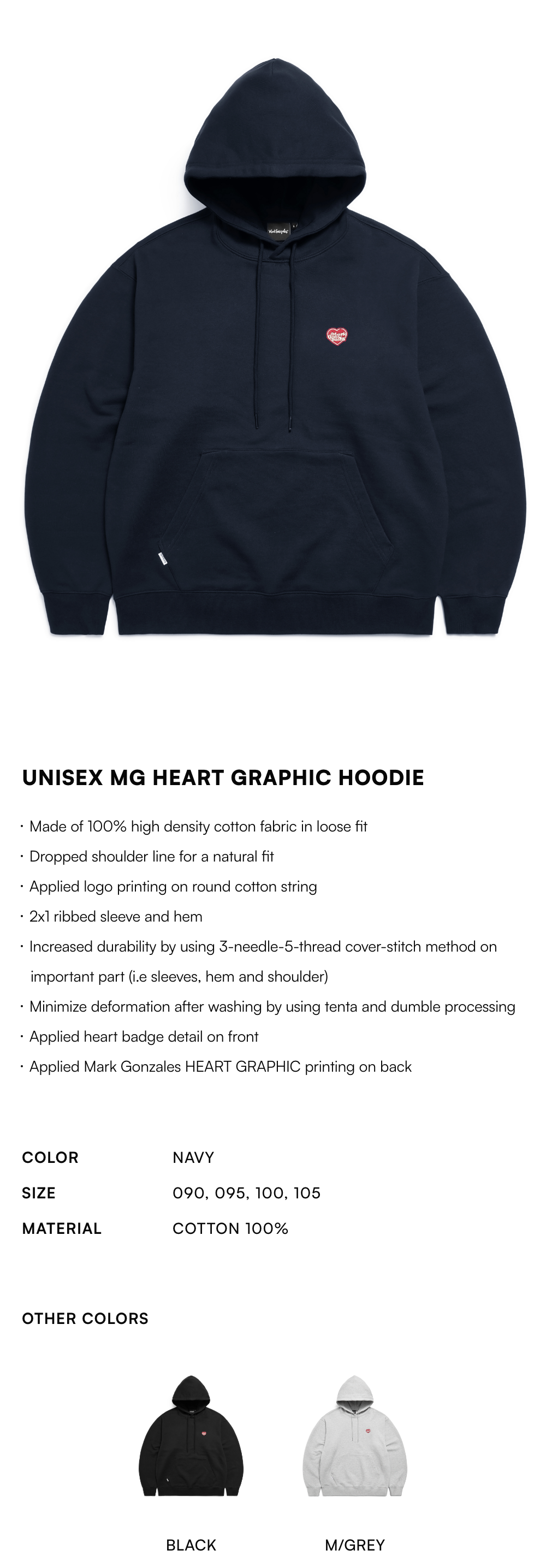 【20% OFF】Unisex MG Heart Graphic Hoodie - NAVY