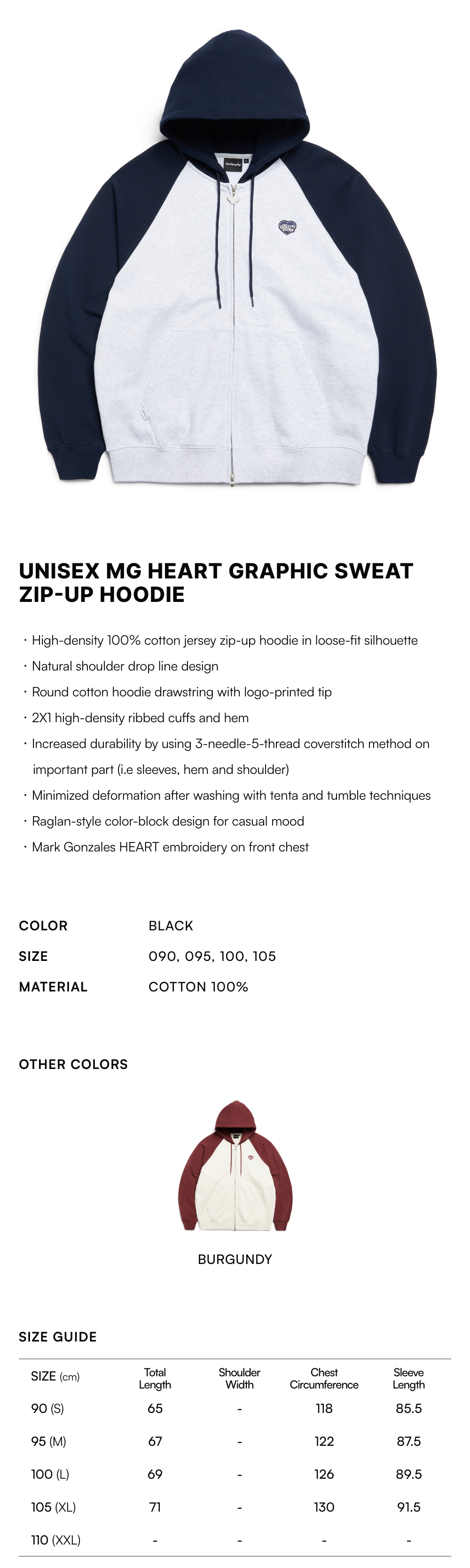 【20% OFF】Unisex MG Heart Graphic Sweat Zip-Up Hoodie - NAVY