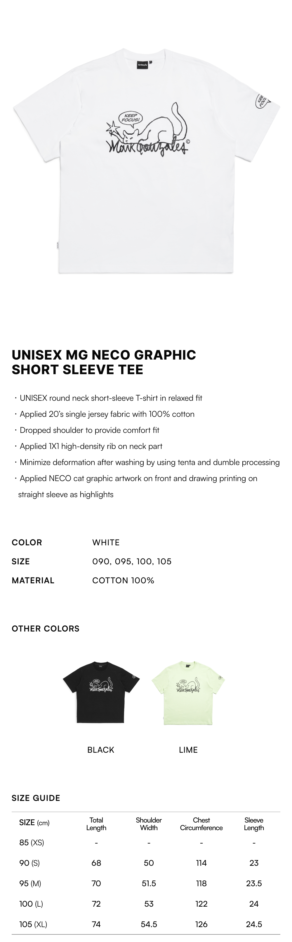 【15% OFF】Unisex MG NECO Graphic Short Sleeve Tee - WHITE