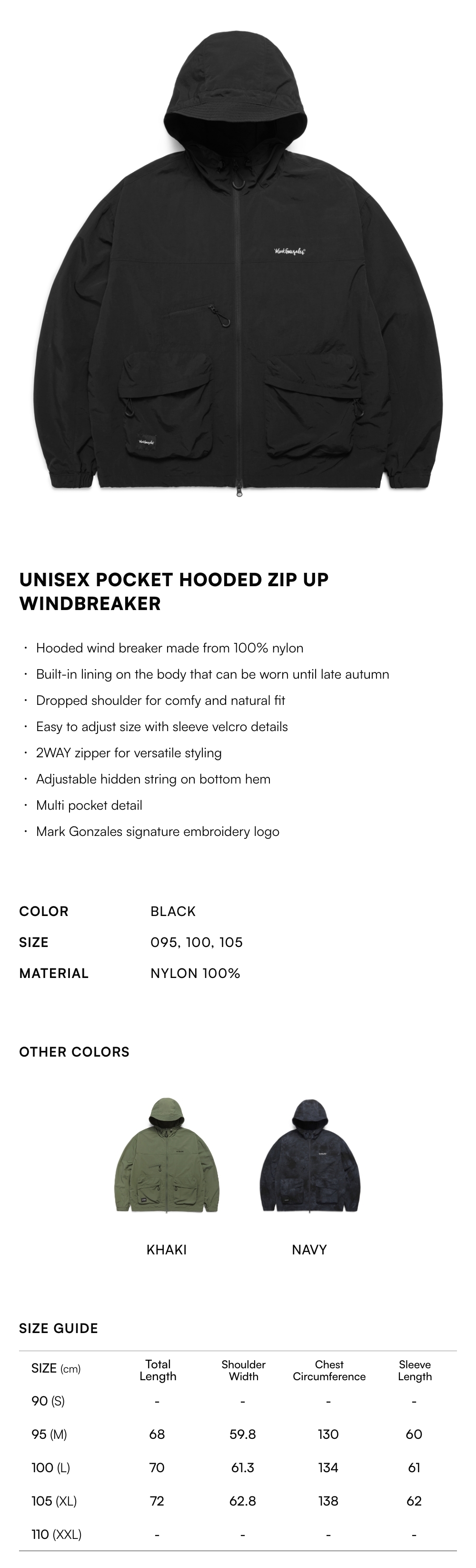 - Hooded wind breaker made from 100% nylon