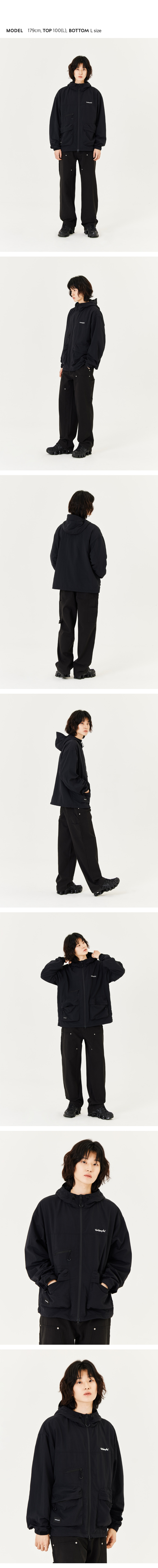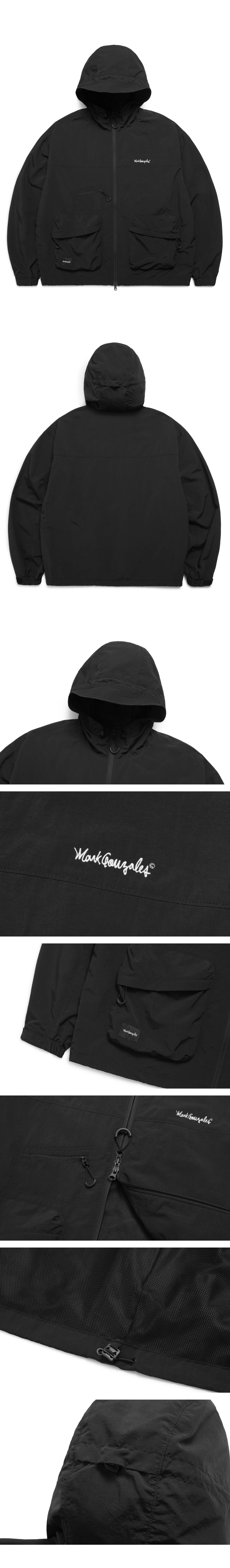 【20% OFF】Unisex Pocket Hooded Zip Up Windbreaker - BLACK
