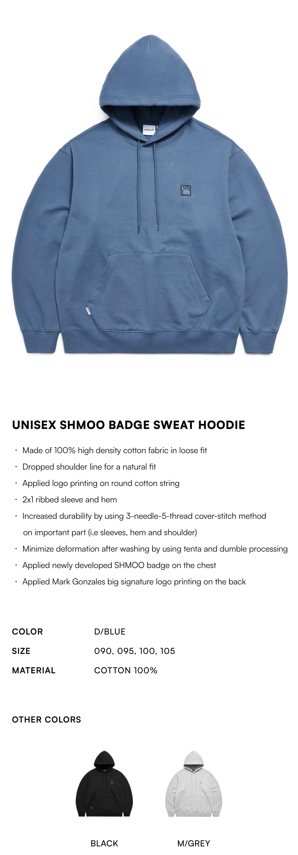【20% OFF】Unisex SHMOO Badge Sweat Hoodie - D/BLUE
