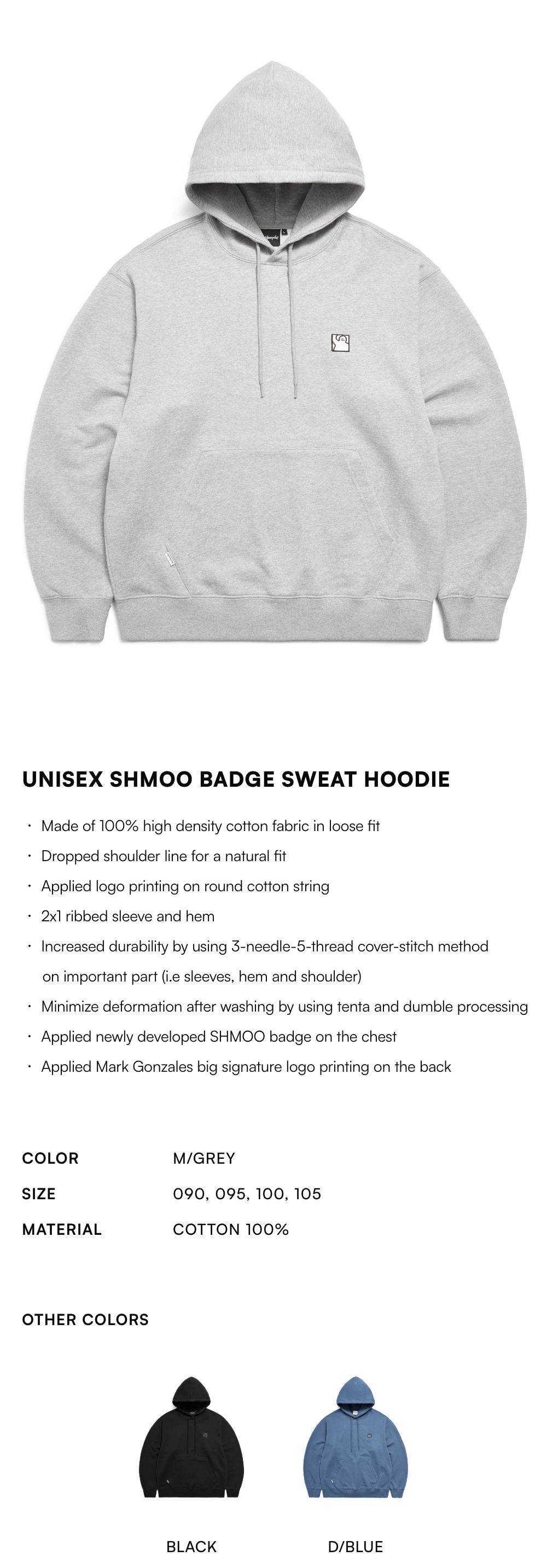 【20% OFF】Unisex SHMOO Badge Sweat Hoodie - M/GREY