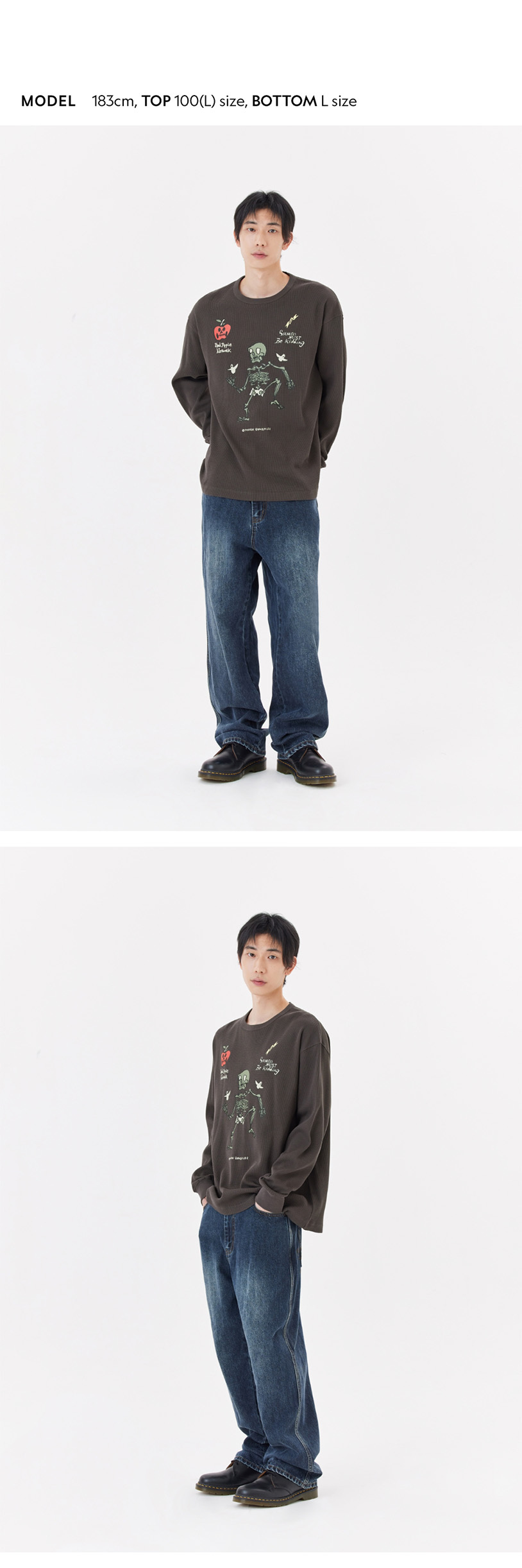 - Loose-fit round-neck long-sleeve T-shirt.