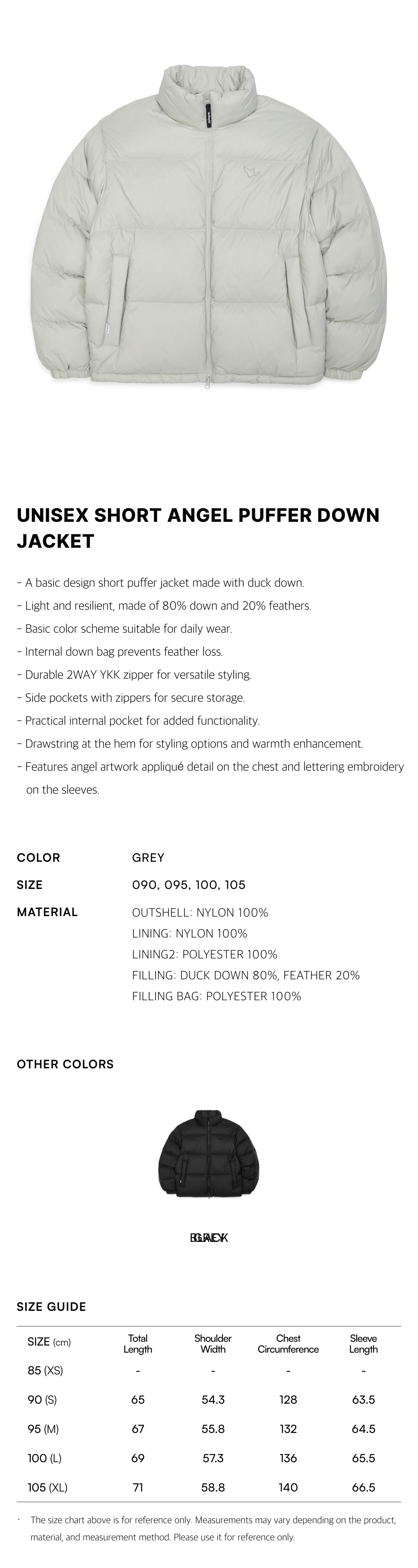 - A basic design short puffer jacket made with duck down.